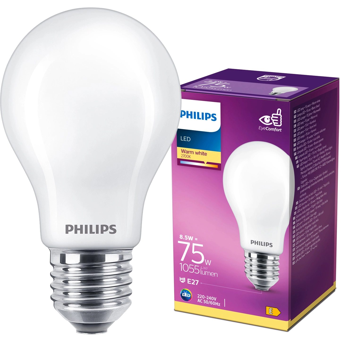 Zapewnij swojemu domowi jasność i oszczędność energii dzięki klasycznej żarówce LED Philips z serii LED Classic. Żarówka o mocy 8.5W jest odpowiednikiem tradycyjnej żarówki 75W, co pozwala na znaczące obniżenie zużycia energii przy zachowaniu doskonałej jakości światła. Emituje przyjemne, ciepłe światło o temperaturze 2700K i strumieniu świetlnym 1055lm, idealne do stworzenia przytulnej atmosfery w każdym pomieszczeniu.