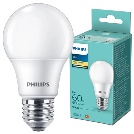 Odkryj nową jakość oświetlenia dzięki żarówce LED E27 A60 8W marki Philips z serii Essential. Ta zaawansowana technologicznie żarówka to idealna alternatywa dla tradycyjnych żarówek o mocy 60W, oferując oszczędność energii przy jednoczesnym zachowaniu wysokiej jakości i wydajności. Z mocą znamionową 8W i strumieniem świetlnym o wartości 806 lumenów, zapewnia przytulną, ciepłą białą barwę światła o temperaturze 2700K. Dzięki kątowi rozsyłu światła wynoszącemu 180°, idealnie sprawdzi się zarówno w pomieszczeniach domowych, jak i biurowych.