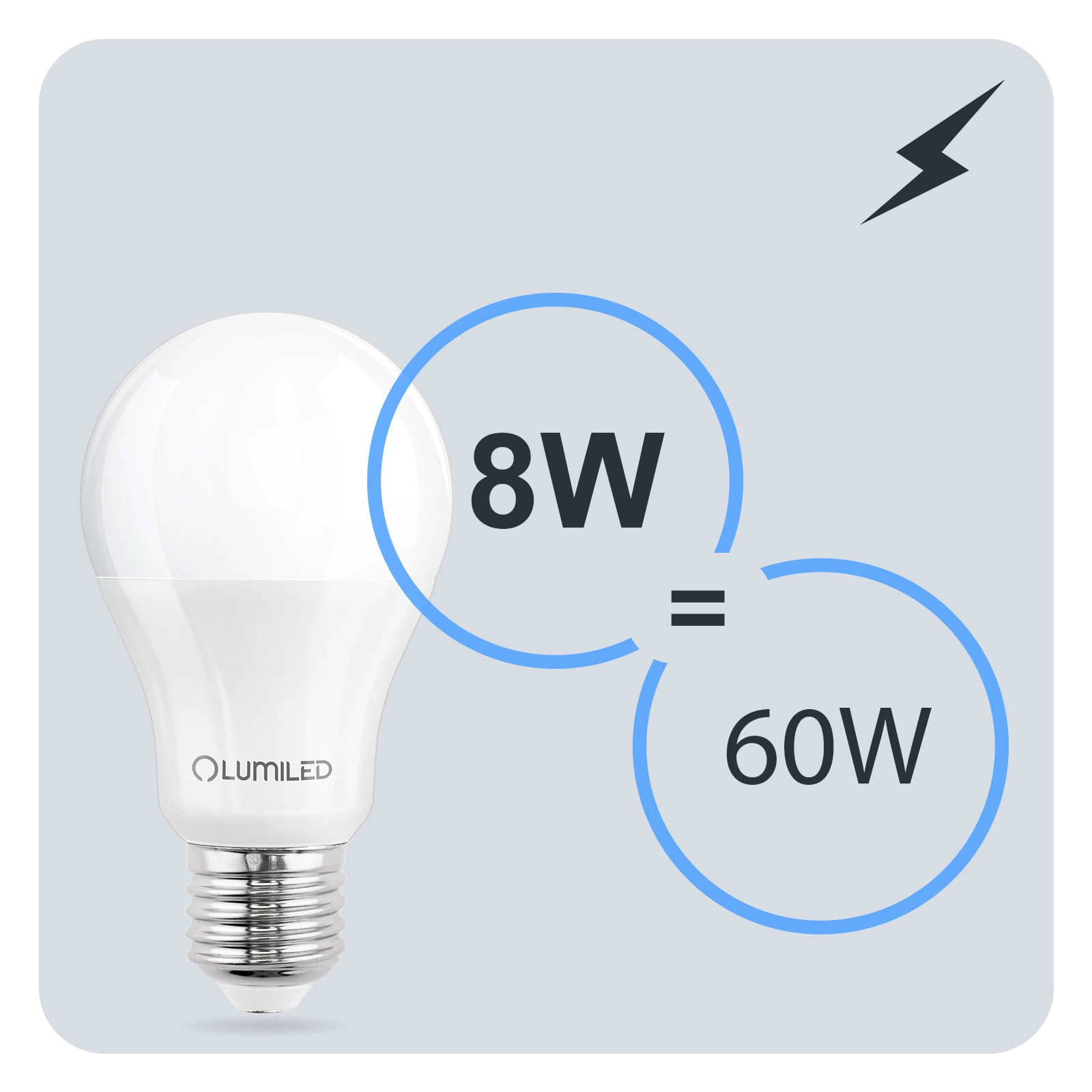 Żarówka LED E27 A60 8W = 60W 806lm 3000K Ciepła 260° LUMILED