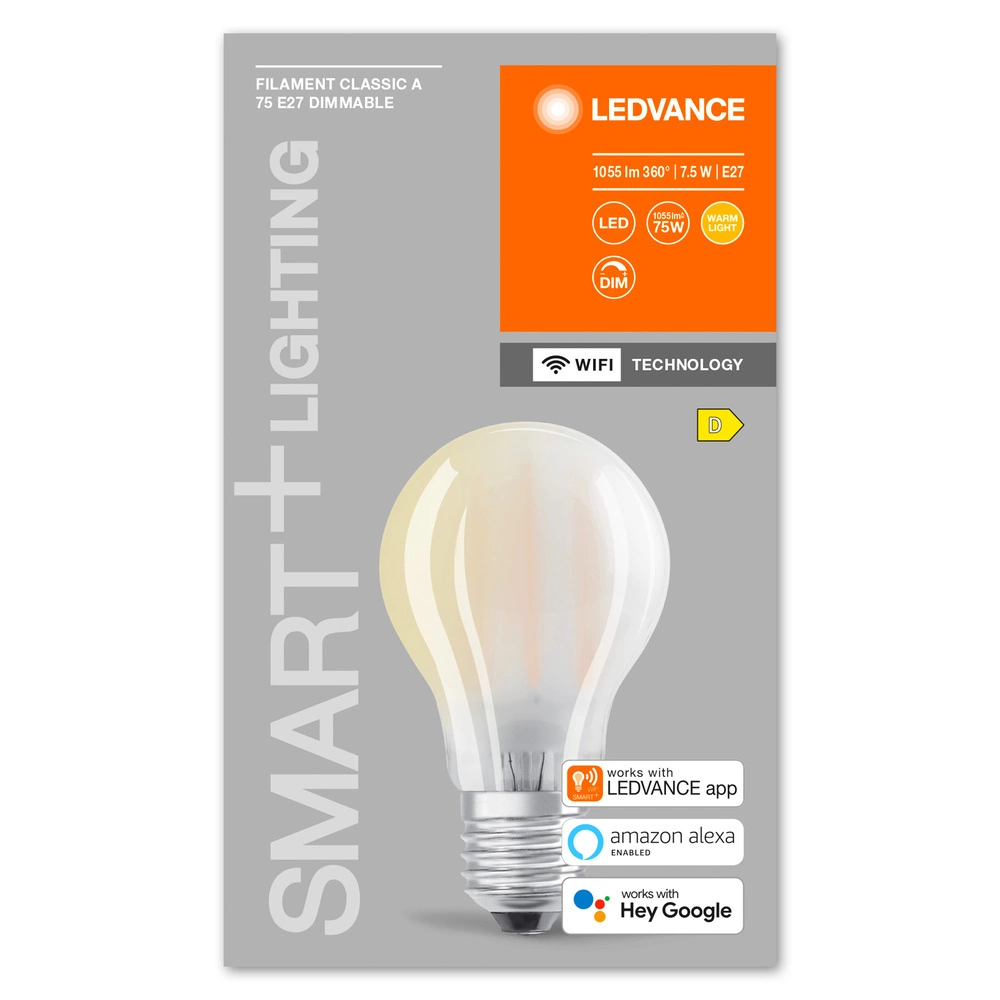 Żarówka LED E27 o mocy 7.5W, będąca odpowiednikiem klasycznej żarówki 75W, łączy nowoczesną technologię z klasycznym designem dzięki serii Filament Classic. Charakteryzuje się wysokim strumieniem świetlnym 1055 lm oraz skutecznością świetlną 141 lm/W, dając białe ciepłe światło o wskaźniku oddawania barw Ra 80. Dzięki możliwości ściemniania, można samodzielnie dostosować jasność do własnych potrzeb.