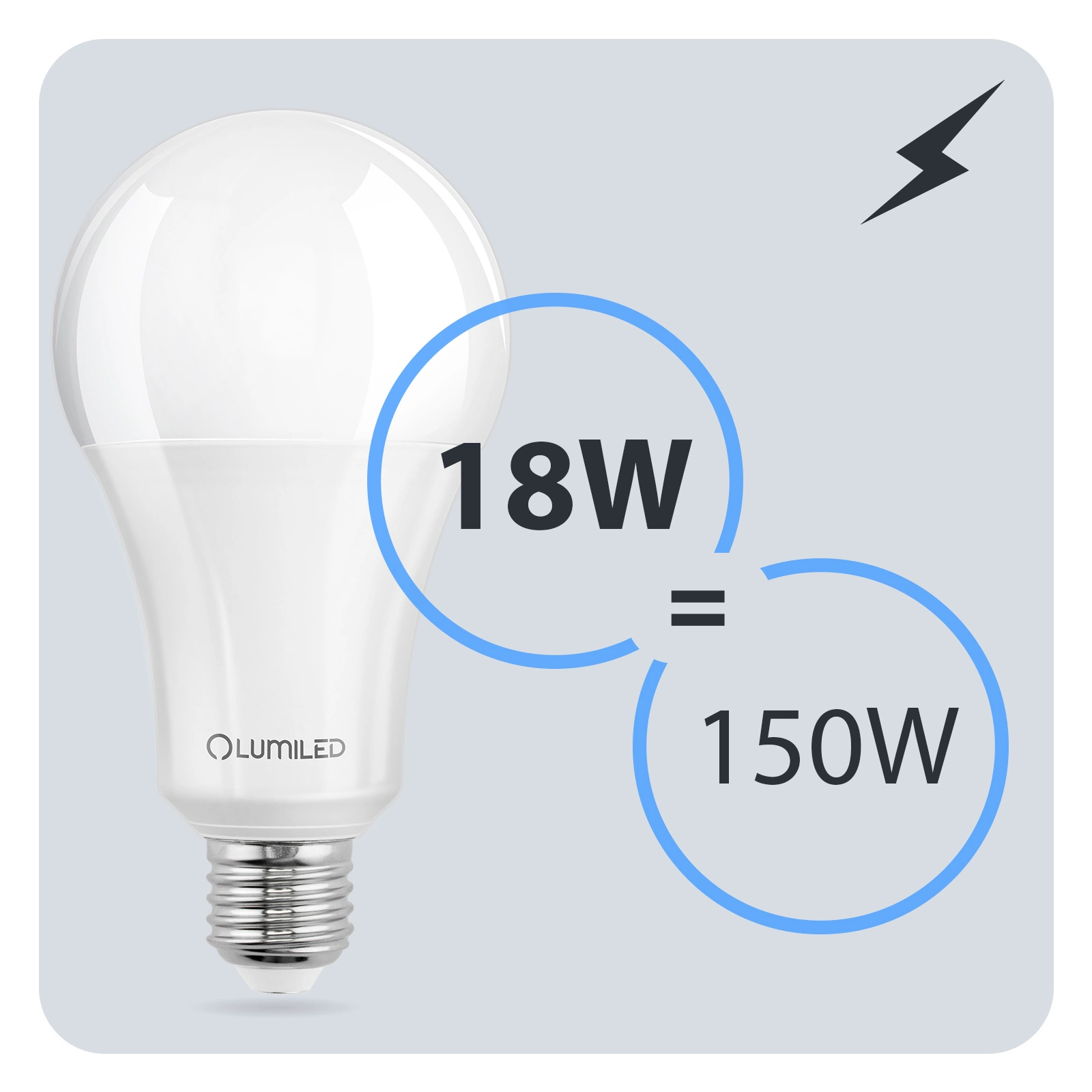 Żarówka LED E27 A60 18W = 150W 2421lm 6500K Zimna 260° LUMILED