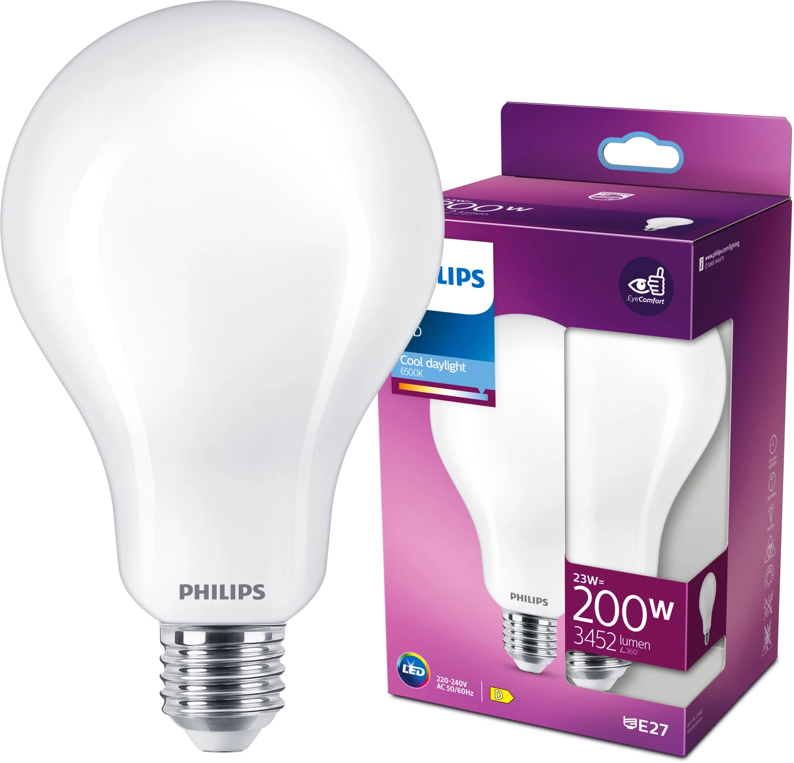 Odkryj moc światła z żarówką LED E27 A95 od marki Philips! Ta innowacyjna technologia LED oferuje niesamowitą skuteczność świetlną, sięgającą aż 3452 lumenów, przy jedynie 23W mocy, co odpowiada tradycyjnej żarówce o mocy 200W. Dzięki temu oszczędzisz na rachunkach za energię elektryczną, nie rezygnując z jasności i jakości oświetlenia, które wprowadzi do Twojego wnętrza klimat zimnej bieli (6500K). Nowoczesny design z klasycznym trzonkiem E27 sprawia, że żarówka jest nie tylko funkcjonalna, ale także doskonale uzupełnia każdą oprawę świetlną.