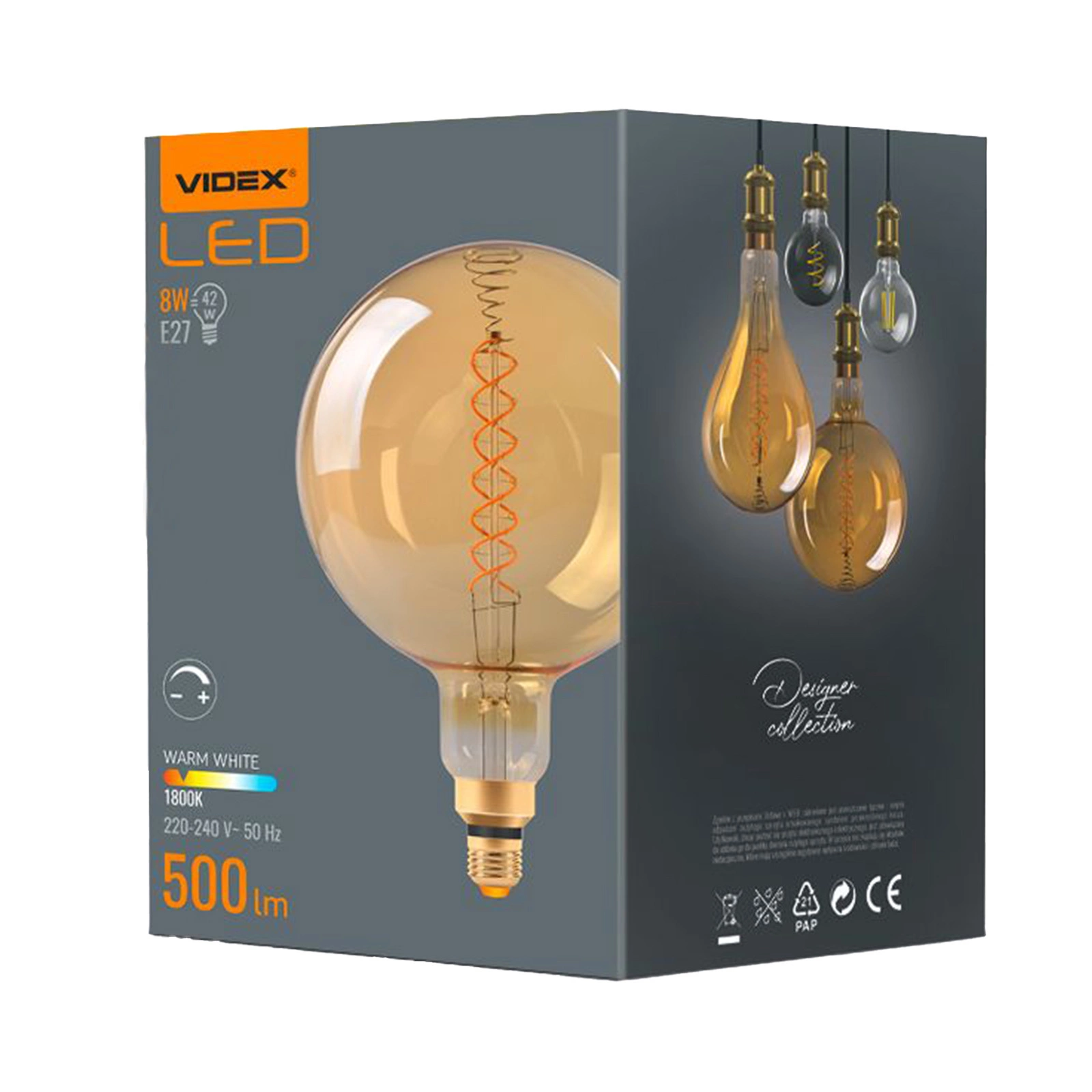 Odkryj wyjątkową jakość oświetlenia dzięki żarówce LED E27 G200 w kształcie kuli, oferującej moc 8W z jasnością równoważną tradycyjnej 42W. Generuje przytulne, ciepłe światło o temperaturze 1800K, idealne do tworzenia nastroju w dowolnym pomieszczeniu. Projekt oparty na technologii 360° FILAMENT zapewnia równomierne rozproszenie światła.