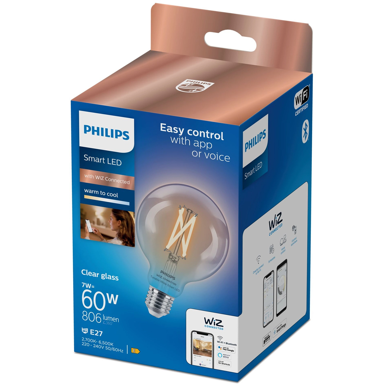 Żarówka LED E27 Kula G95 7W = 60W 806lm 2700-6500K TW FILAMENT Inteligentna SMART WiFi Bluetooth Aplikacja WiZ Philips