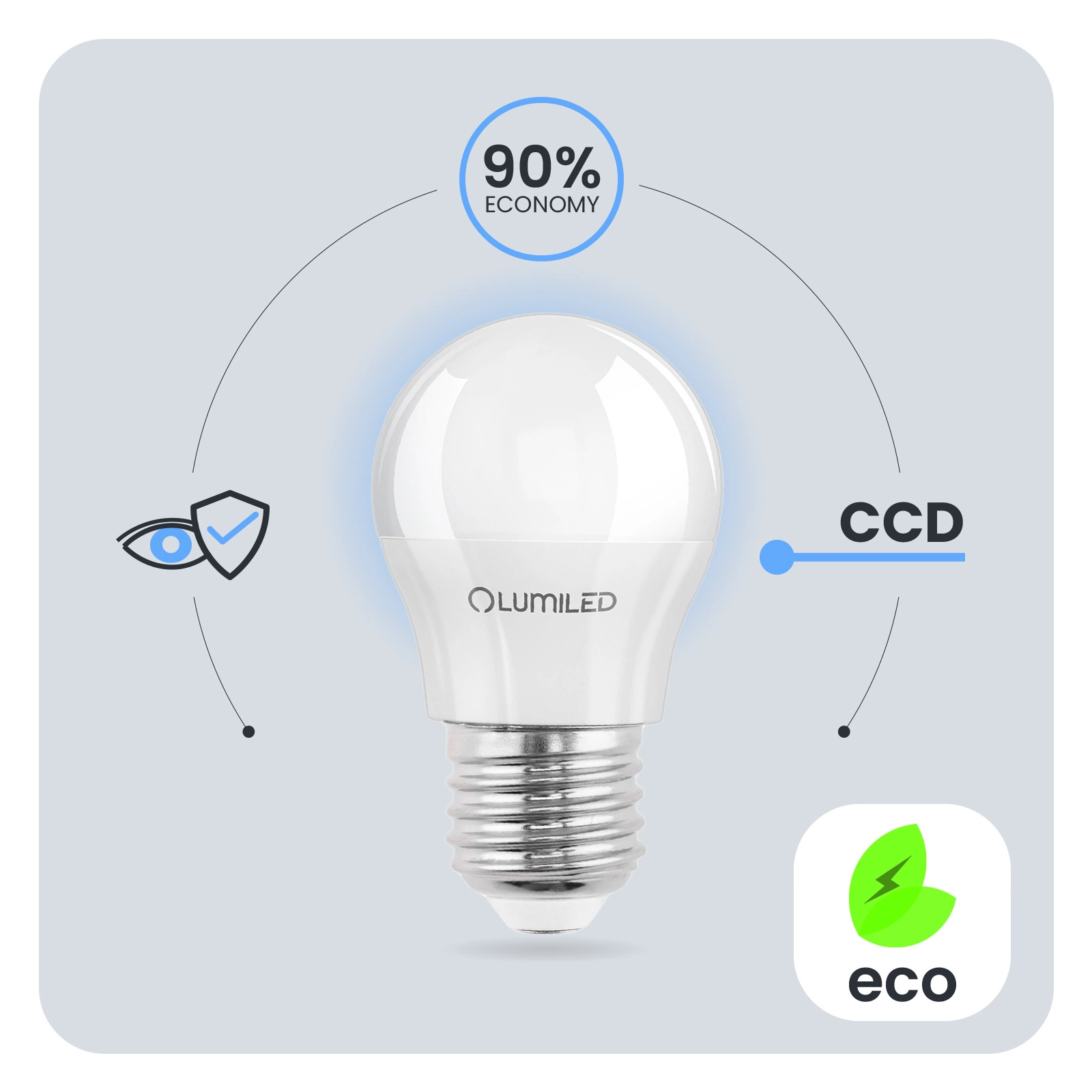 Zastosowana przetwornica CCD w żarówce LED sprawia, że żarówka jest odporna na spadki i wzrosty napięcia w sieci. Światło nie migocze, ani nie drży. Przetwornica CCD sprawia, że żarówka jest bezawaryjna przez długi czas. Żarówki LUMILED zaprojektowane zostały z myślą o jej użytkownikach. Słaba jakość oświetlenia może prowadzić do zmęczenia oczu dlatego nasze Żarówki posiadają opracowanie techniczne Eye Safe zapewnią komfortowe i przyjazne oświetlenie twoim oczom w każdym pomieszczeniu.