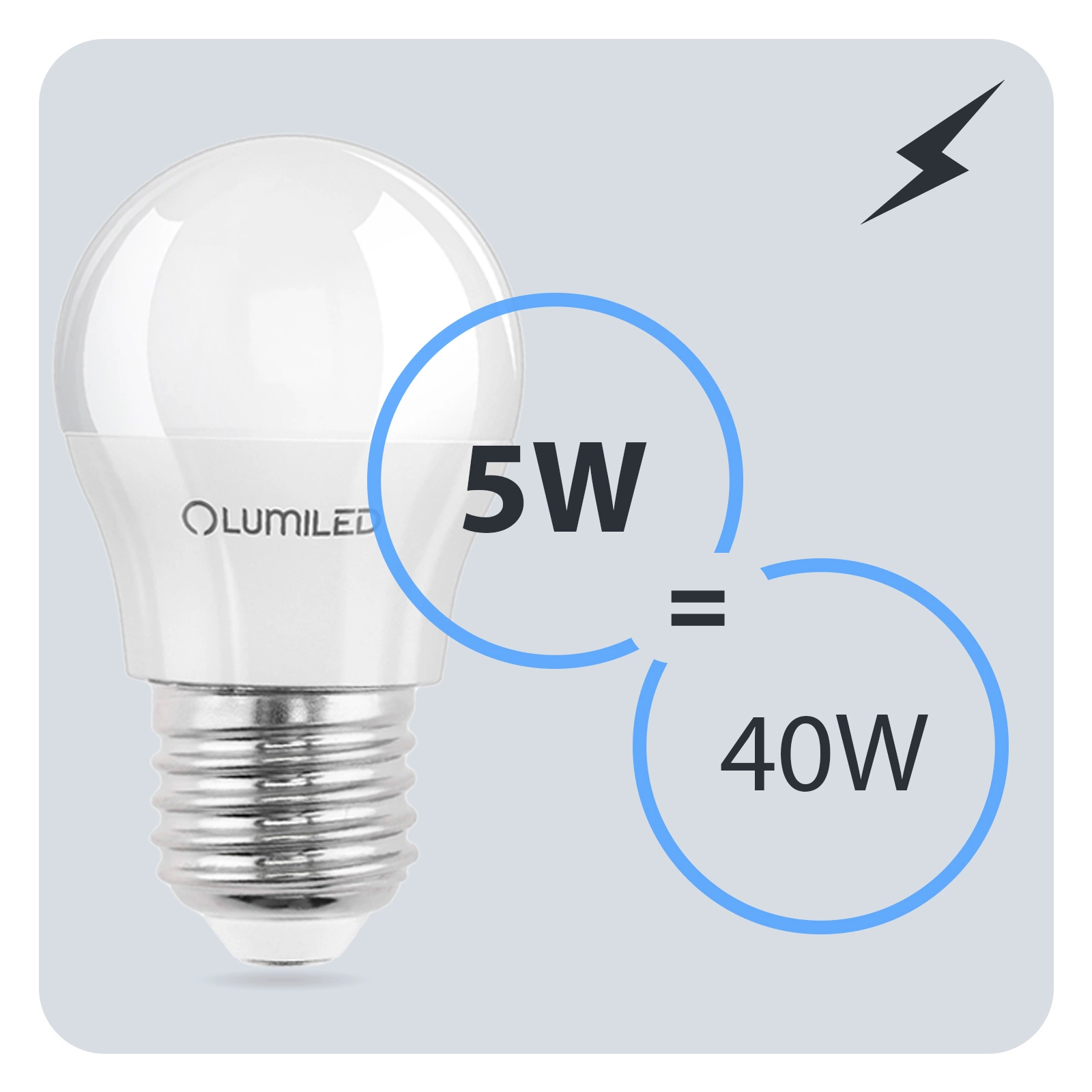 • Jedynie 5W mocy – daje jasność na poziomie klasycznej 40W, a przy tym zużywa niewiele energii, gwarantując oszczędność każdego dnia.