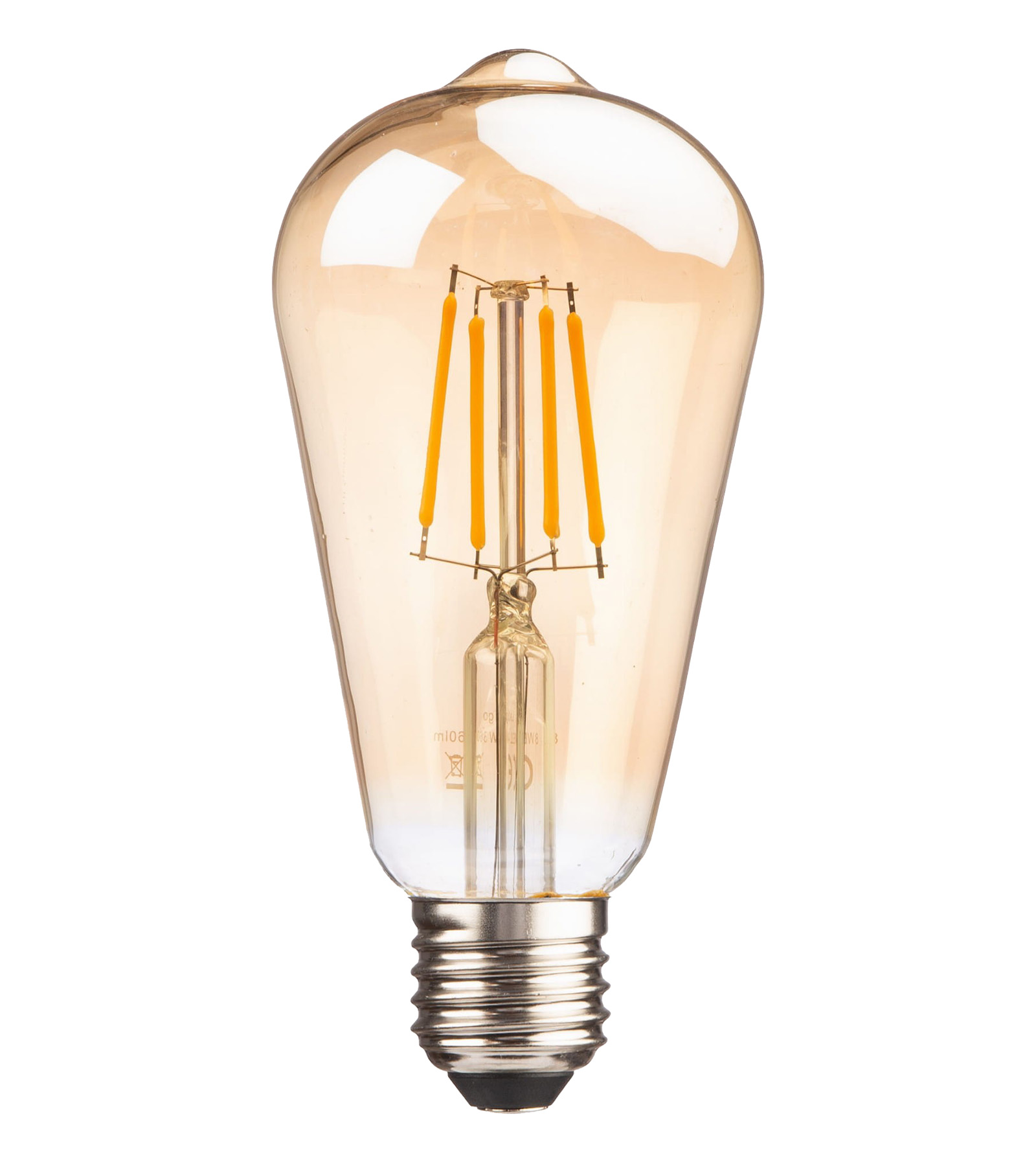 Prezentowana żarówka LED wyróżnia się bursztynowym wybarwieniem bańki i modnym kształtem nawiązującym do Edisonowskich żarówek idealnie wpisujących się w klimaty retro/vintage. Może być montowana we wszystkich tradycyjnych oprawach, które wyposażone są w trzonek E27. Niski pobór mocy 4W daje oszczędność w zużyciu prądu. Jej moc świetlna wynosi 360lm - jest wysterowana na 80% mocy maksymalnej, aby zapewnić jej długą żywotność.
