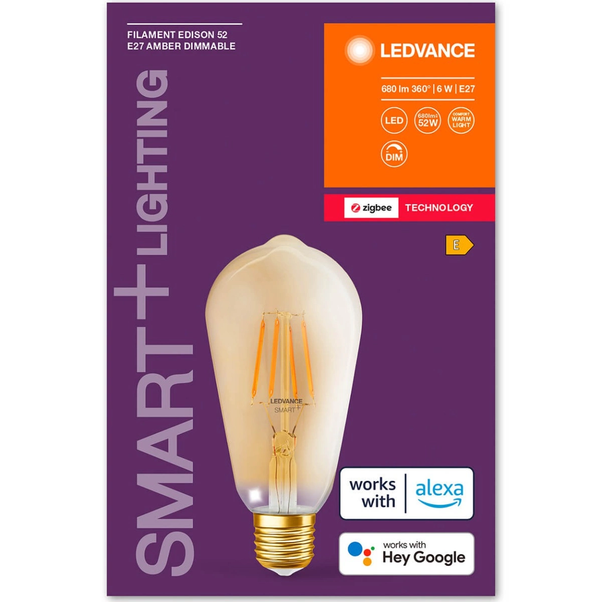 Żarówka LED SMART+ w kształcie Edison ST64 zamknięta w złocistym szkle renomowanej i cenionej w branży oświetleniowej firmy LEDVANCE. Główną charakterystyczną cechą Żarówki jest możliwość sterowania nią przy pomocy kompatybilnego systemu inteligentnego domu (Aplikacja Mobilna) lub przełącznika SMART+ Switch (sprzedawany osobno). Za pomocą aplikacji w łatwy i szybki sposób możemy regulować poziom jasności, dzięki funkcji ściemniania. Żarówka LEDVANCE SMART+ o mocy 6W jest odpowiednikiem tradycyjnej żarówki o mocy 52W. Nowoczesna Żarówka LED SMART+ zapewni oświetleniowy klimat na każdą okazję. Produkt o wysokiej trwałości zapewnia swoją niezawodność przez blisko 20 000 godzin. Żarówka wykonana została, przy użyciu nowoczesnych rozwiązań wykorzystując innowacyjną technologię diod LED, dzięki którym uzyskujmy wysoką wydajność parametrów oraz wierne odwzorowanie barw. Głównym atutem ZIGBEE jest niższe zużycie energii, w porównaniu do urządzeń opartych na protokole Wi-Fi. Kolejnym plusem jest rodzaj połączenia - za pomocą mostka (bramki) który, odciąża sieć domową, co przekłada się na jej prędkość. Urządzenia ZIGBEE zasilane napięciem 220 - 240V pracują w sieci typu MESH przez co każde urządzenie działa na zasadzie "repeatera" przesyłając sygnał do innych urządzeń, dzięki temu mogą działać na większych odległościach, a przy tym nie powodują zakłóceń. Do prawidłowego działania niezbędna jest Bramka ZIGBEE. Żarówka posiada wsparcie dla systemów amazon alexa, SIRI oraz Google Home.