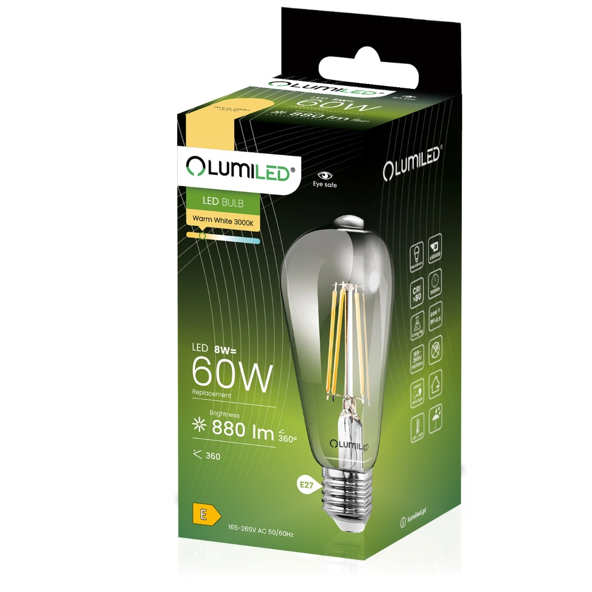 Żarówka LED E27 Edison ST64 8W = 60W 880lm 3000K Ciepła 360° FILAMENT LUMILED