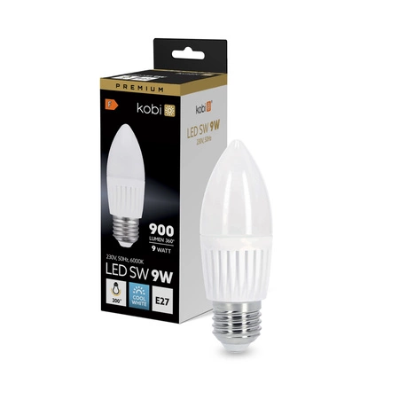 Oświetl swoje wnętrza z nowoczesnością i efektywnością dzięki żarówce LED E27 Świeczka 9W marki Premium Kobi! Ta zaawansowana technologicznie żarówka zapewnia imponujący strumień świetlny 900 lumenów, który bez trudu rozjaśni każde pomieszczenie. Zimna, biała temperatura barwowa 6000K tworzy świeży i wyrafinowany klimat, idealny do biura, kuchni i łazienki, gdzie potrzebujesz pełnego skupienia. Jej nowoczesny design w kształcie świeczki doskonale komponuje się z eleganckimi oprawami świetlnymi, dodając wnętrzom stylu.