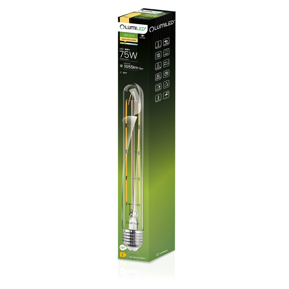Żarówka LED E27 Tubularna T30 8W = 75W 1055lm 3000K Ciepła 360° FILAMENT LUMILED - pierwsza cecha produktu