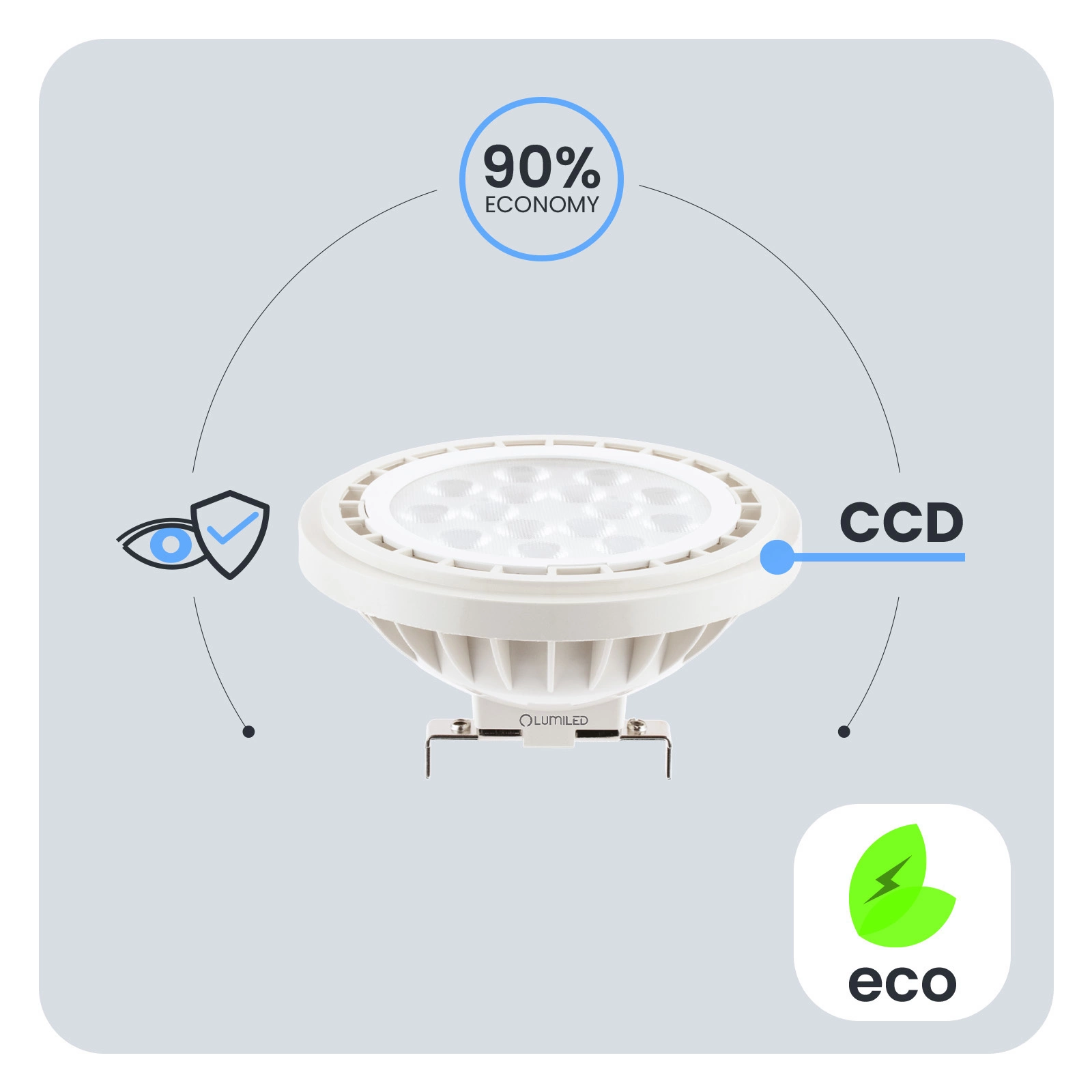 Żarówka LED G53 Reflektor AR111 10W = 75W 1055lm 3000K Ciepła 38° 12V LUMILED