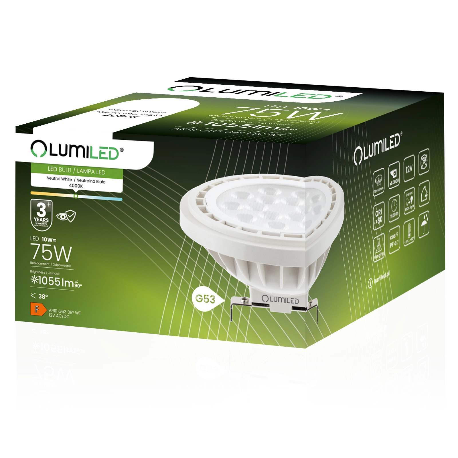 Żarówka LED G53 Reflektor AR111 10W = 75W 1055lm 4000K Neutralna 38° 12V LUMILED