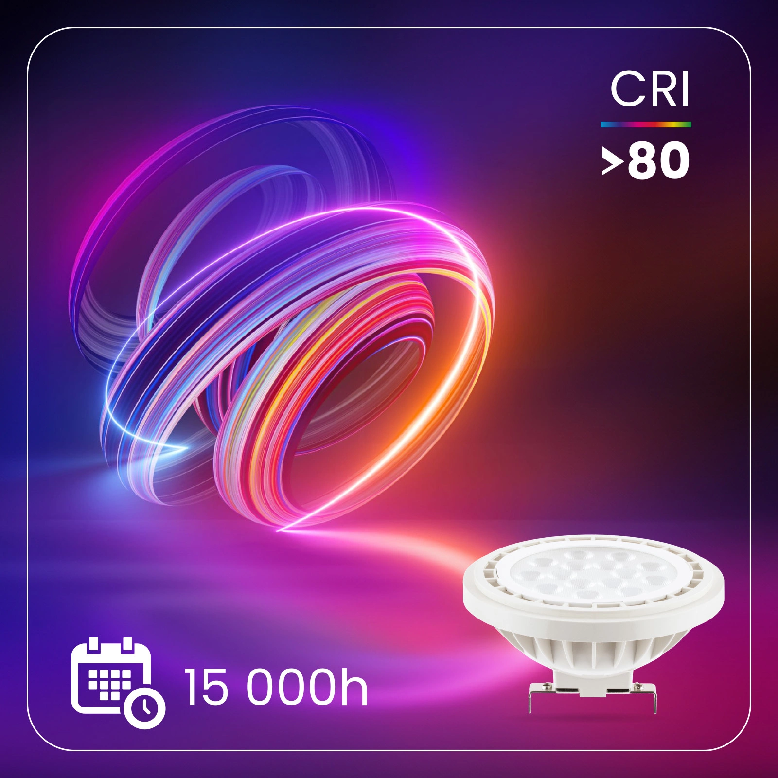 Żarówka LED G53 AR111 marki Lumiled to energooszczędne i nowoczesne źródło światła, które zastępuje tradycyjne halogeny o mocy 100W. Dzięki mocy 15W i strumieniowi 1521 lumenów oferuje jasne, komfortowe oświetlenie, a barwa 4000K wprowadza przyjemny nastrój. Kąt świecenia 38° pozwala precyzyjnie doświetlić wybrane miejsca, co sprawia, że żarówka sprawdzi się zarówno w salonach, jadalniach, jak i w witrynach sklepowych czy restauracjach. To wybór dla osób, które cenią oszczędność, estetykę i wysoką jakość światła.