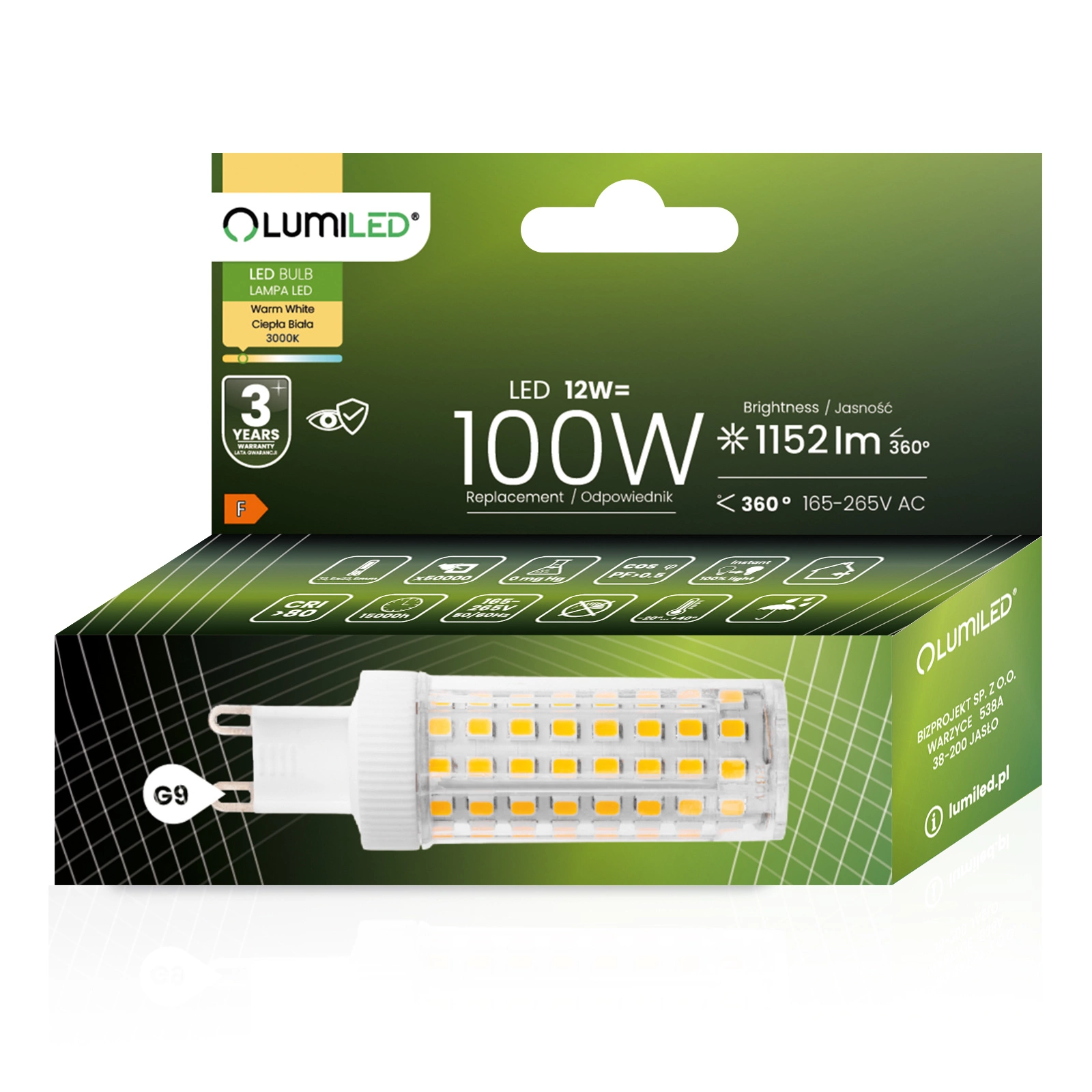 Żarówka LED G9 Kapsułka 12W = 100W 1152lm 3000K Ciepła 360° LUMILED
