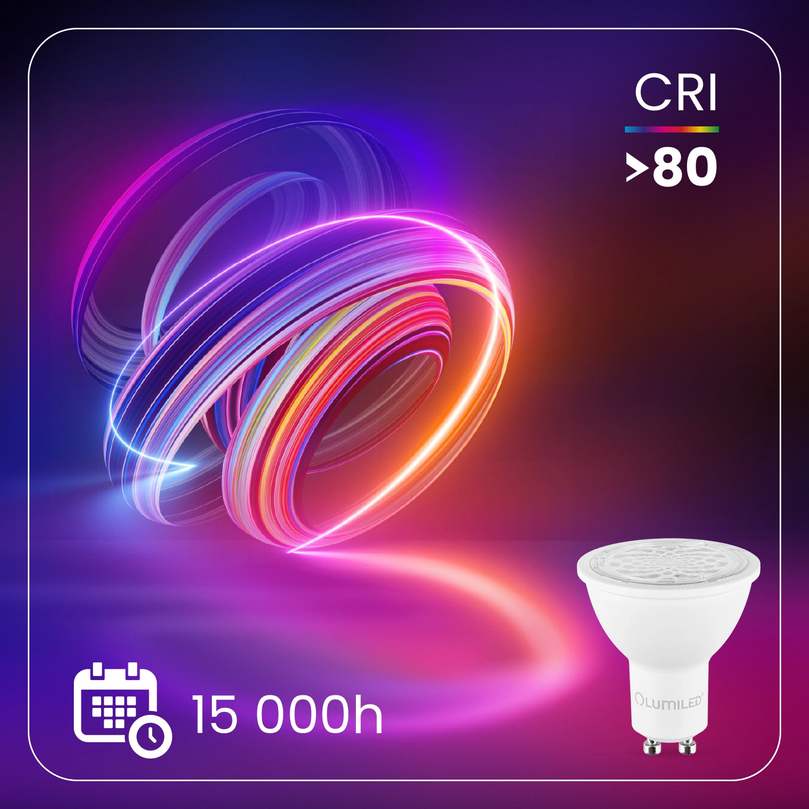 Żarówka LED renomowanej marki LUMILED z trzonkiem GU10 i mocy 6W to doskonały zamiennik tradycyjnych żarówek o mocy 50W, oferując przy tym oszczędność energii oraz dłuższą żywotność. Emituje światło o strumieniu świetlnym 580 lumenów i ciepłej barwie 3000K co sprawia, że idealnie nadaje się do oświetlenia wnętrz, gdzie wymagana jest delikatna, przyjemna barwa światła. Regulowany kąt świecenia 24, 36 lub 60° pozwala na indywidualne ustawienie rozproszenia światła, skutecznie akcentując oświetlane przedmioty. Dzięki wysokiej jakości wykonania, ma żywotność aż 15 000 godzin, co przekłada się na wieloletnie użytkowanie. Dodatkowo pracuje w szerokim zakresie napięcia 165-265V i jest przystosowana do użytkowania w temperaturach otoczenia od -20°C do +40°C. Idealny wybór dla osób ceniących oszczędność energii oraz dbałość o środowisko.