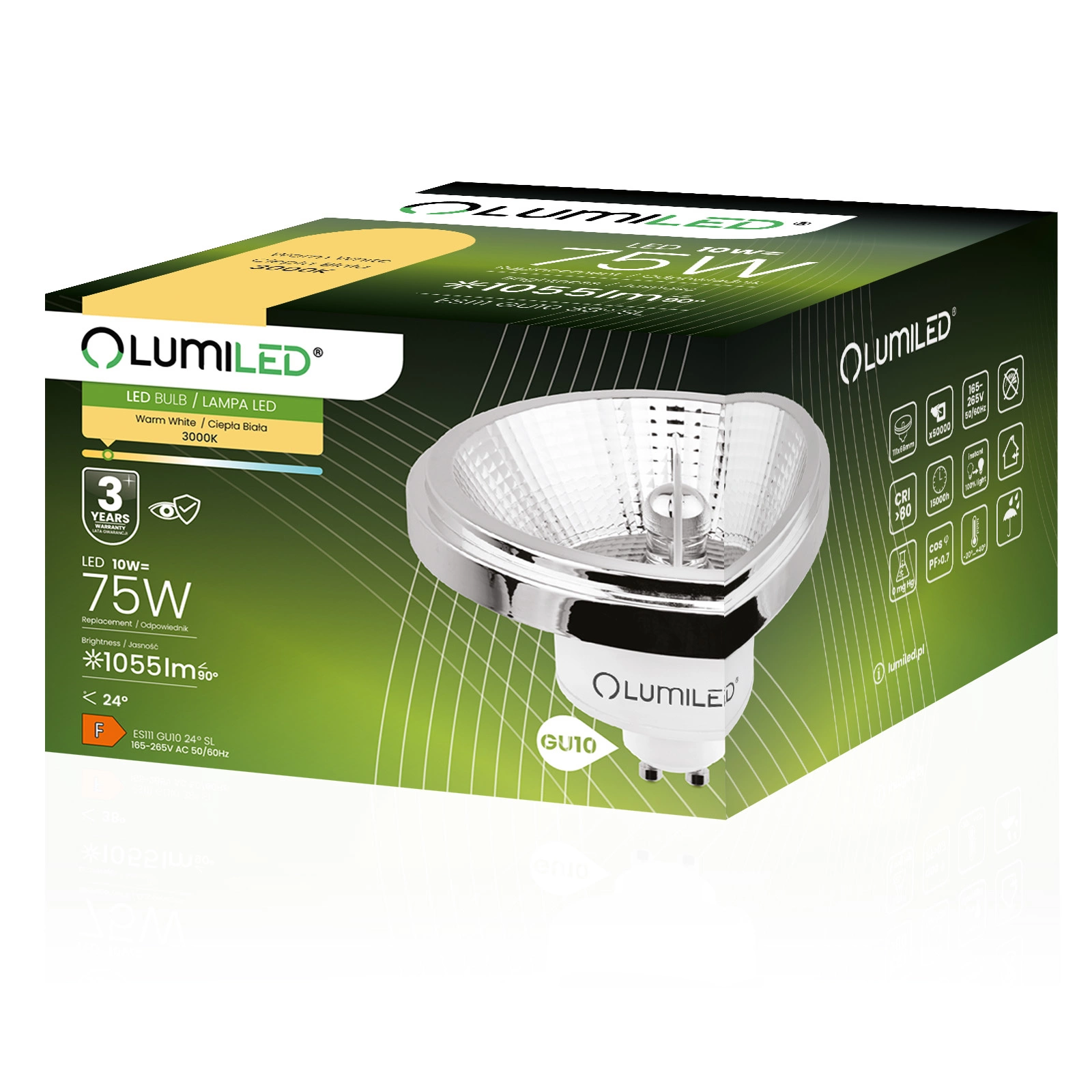 Żarówka LED GU10 Reflektor ES111 10W = 75W 1055lm 3000K Ciepła 24° Srebrna Srebrna LUMILED