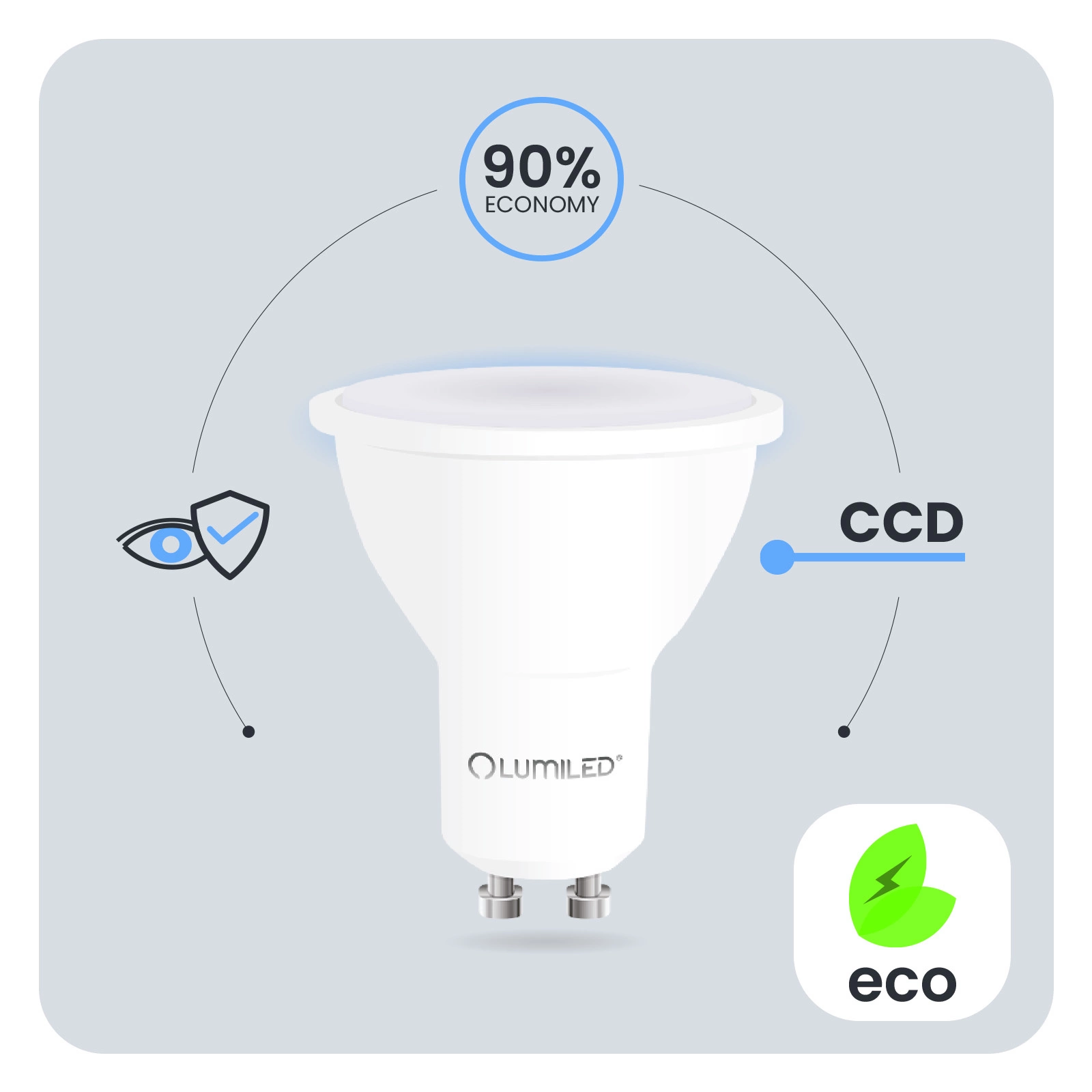 Zastosowana przetwornica CCD w żarówce LED sprawia, że żarówka jest odporna na spadki i wzrosty napięcia w sieci. Światło nie migocze, ani nie drży. Przetwornica CCD sprawia, że żarówka jest bezawaryjna przez długi czas. Żarówki LUMILED zaprojektowane zostały z myślą o jej użytkownikach. Słaba jakość oświetlenia może prowadzić do zmęczenia oczu dlatego nasze Żarówki posiadają opracowanie techniczne Eye Safe zapewnią komfortowe i przyjazne oświetlenie twoim oczom w każdym pomieszczeniu.