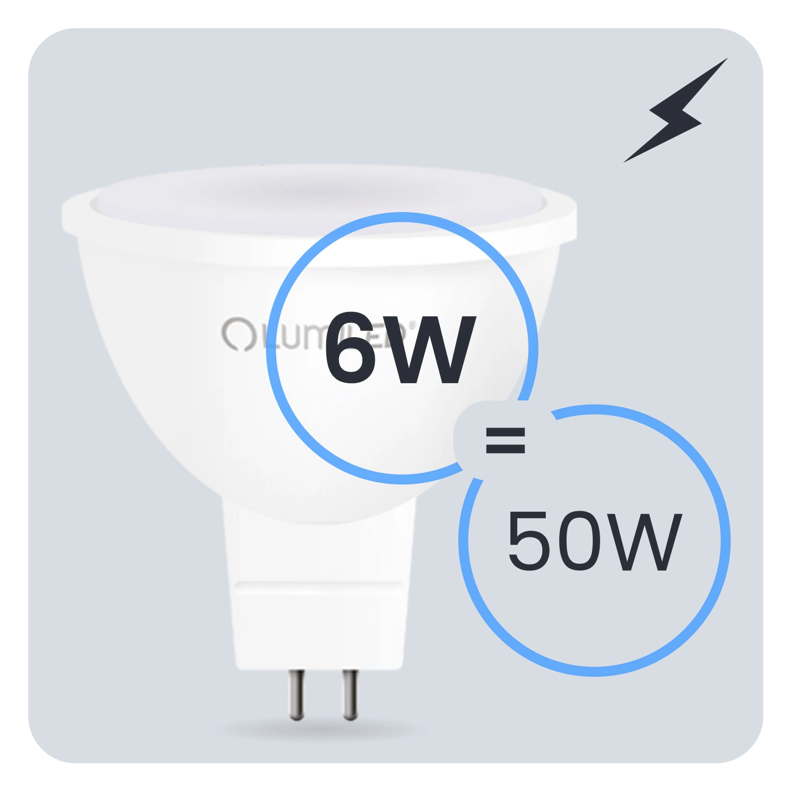 - Kompaktowy rozmiar żarówki GU5.3 - pasuje do większości opraw i reflektorów sufitowych, sprawdzając się nawet w bardzo ciasnych przestrzeniach
