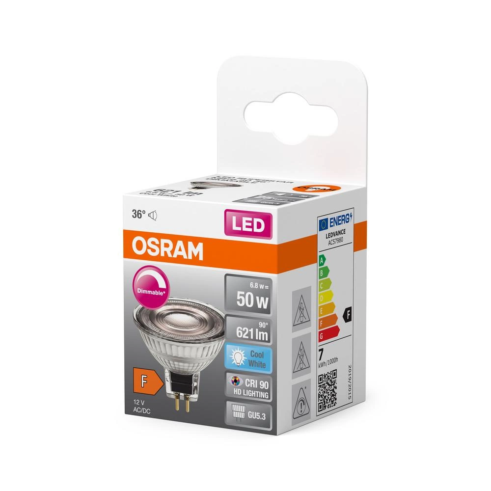 Żarówka LED MR16 Reflektor GU5.3 6.8W = 50W 621lm 4000K Neutralna CRI90 12V 36° Ściemnialna SUPERSTAR Osram