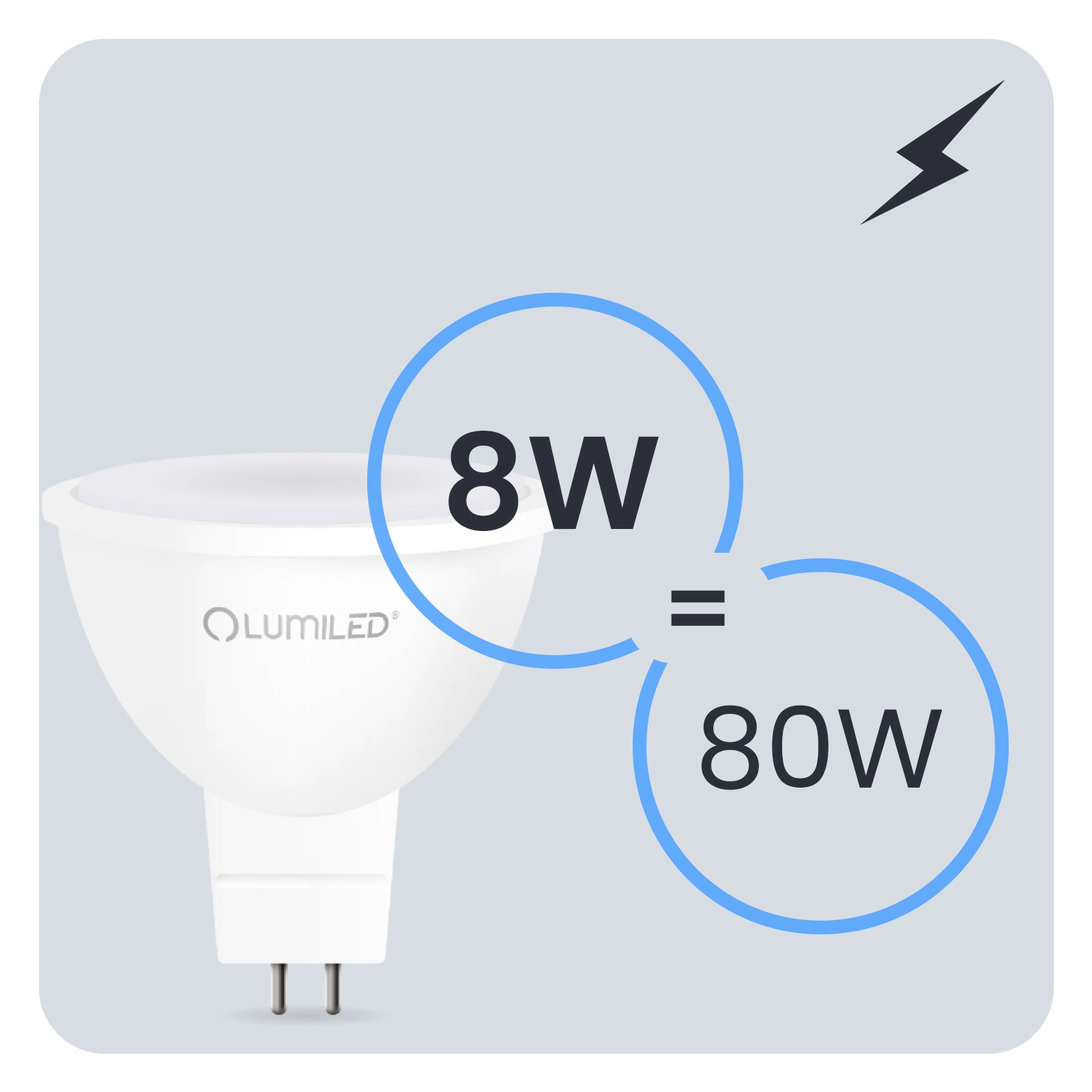 Żarówka LED marki Lumiled oferuje mocne i oszczędne oświetlenie, idealne do kuchni, biur i przestrzeni roboczych. Źródło światła o mocy 8W generuje 720 lm, zapewniając jasność porównywalną z halogenem 80W. Neutralna barwa 4000K sprzyja precyzyjnej pracy, a kąt świecenia 120° równomiernie rozprowadza światło, eliminując cienie. Trzonek GU5.3 oraz zakres napięcia 165–265 V ułatwiają montaż w wielu oprawach. To praktyczne i nowoczesne rozwiązanie do codziennego oświetlenia.