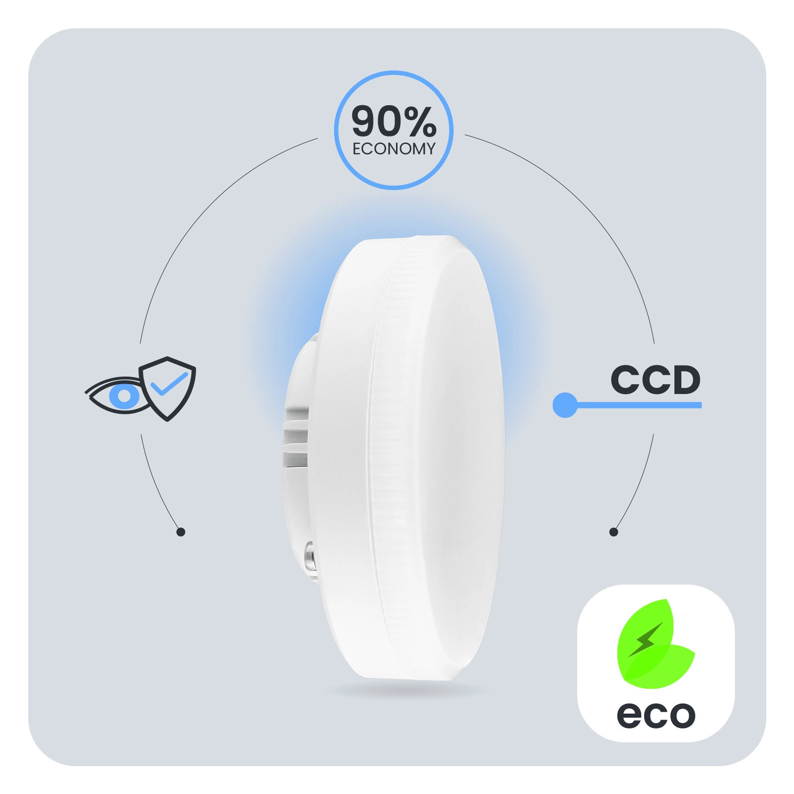 Żarówka doskonale sprawdzi się w każdym gospodarstwie domowym, sklepie, hotelu czy restauracji jako oświetlenie akcentowe lub ogólne i może być montowana we wszystkich tradycyjnych oprawach, które wyposażone są w trzonek GX53