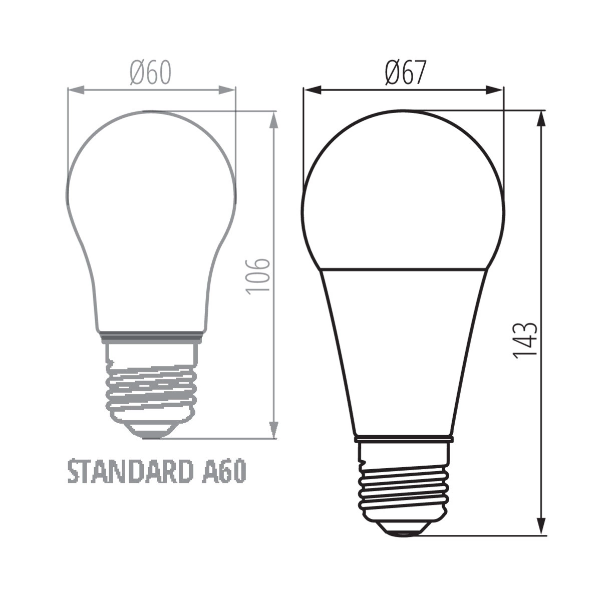Przedstawiamy nową, energooszczędną żarówkę LED E27 A67 firmy Kanlux z serii IQ-LED. Oferująca moc znamionową 19W, ta żarówka stanowi doskonały zamiennik dla tradycyjnej żarówki 150W, co pozwala na znaczne obniżenie rachunków za prąd. Dzięki imponującemu strumieniowi świetlnemu o wartości 2452 lm oraz wysokiej skuteczności świetlnej 129 lm/W, żarówka idealnie doświetli Twoje pomieszczenia zimnym, białym światłem o temperaturze barwowej 6500K.