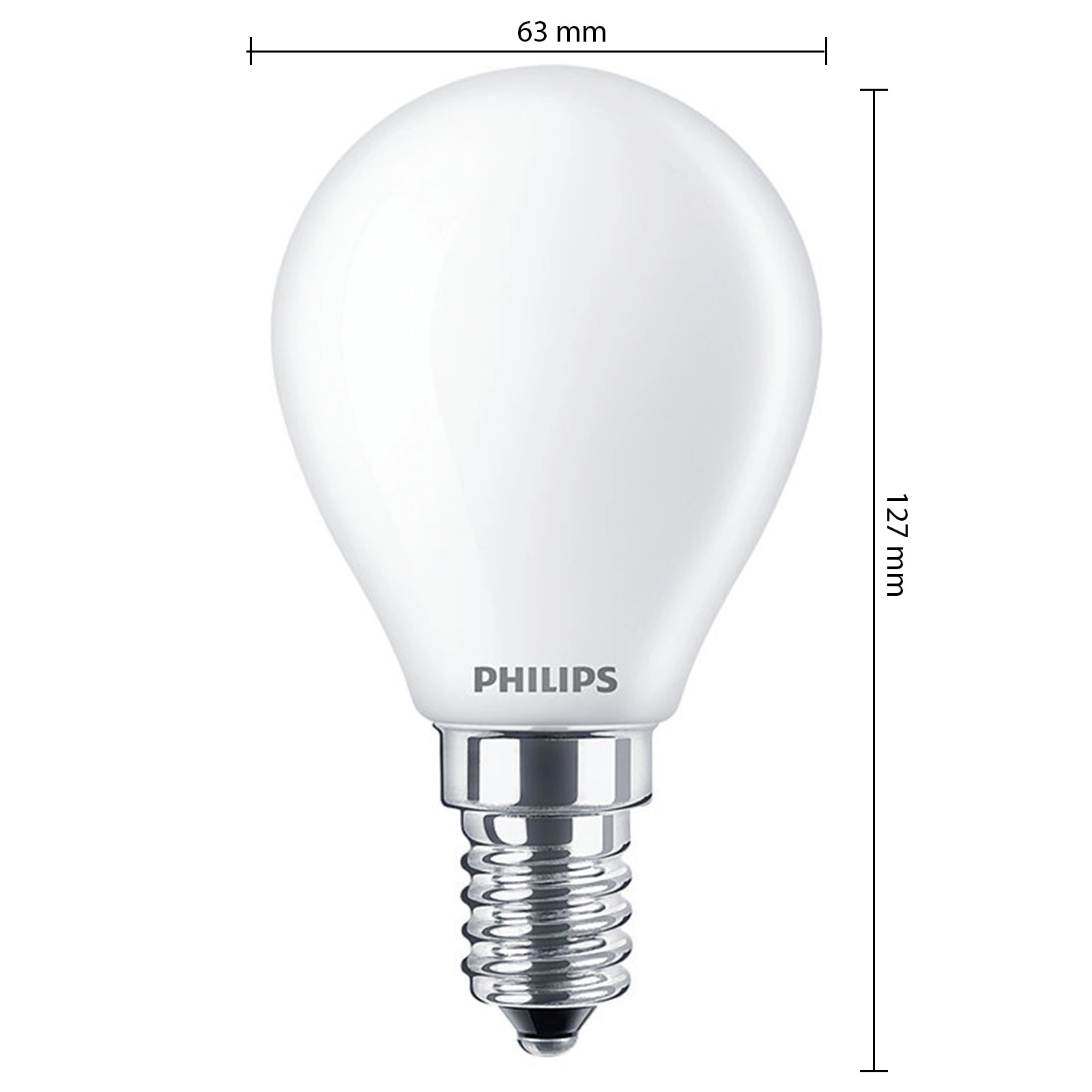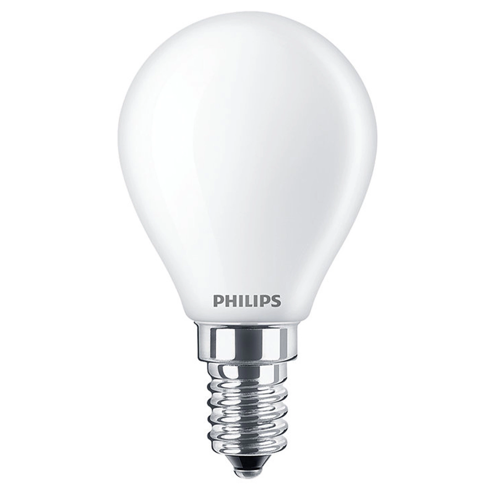 Matowe żarówki LED w kształcie kulki firmy Philips zapewniają wspaniały efekt skrzącego się światła i wyjątkową trwałość. Wyglądają pięknie również wtedy, gdy są wyłączone. Doskonale pasują do żyrandoli z małym gwintem (E14).