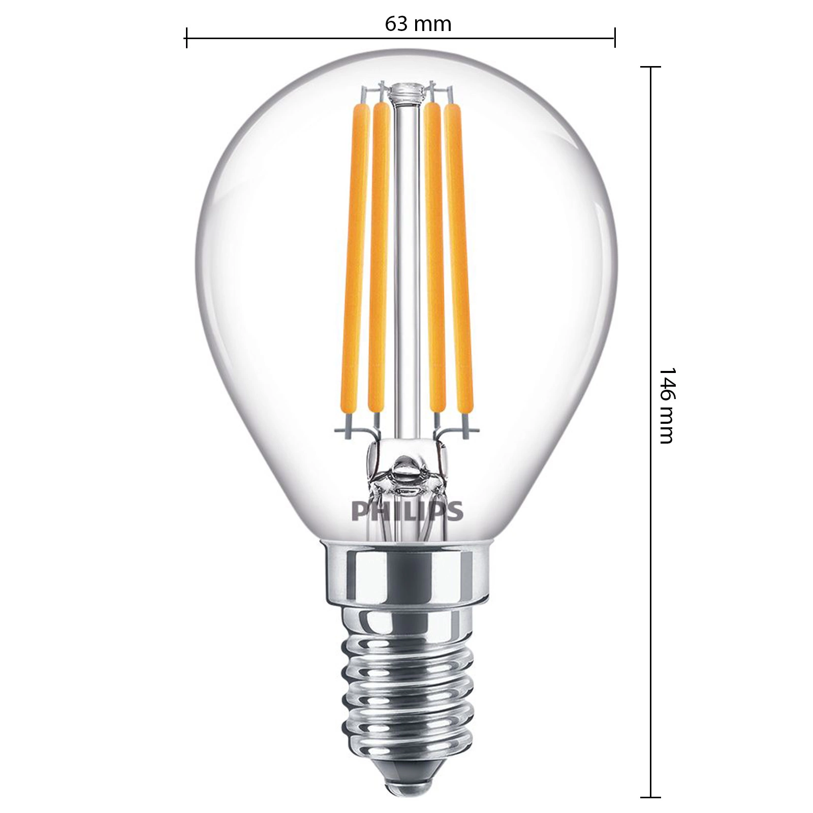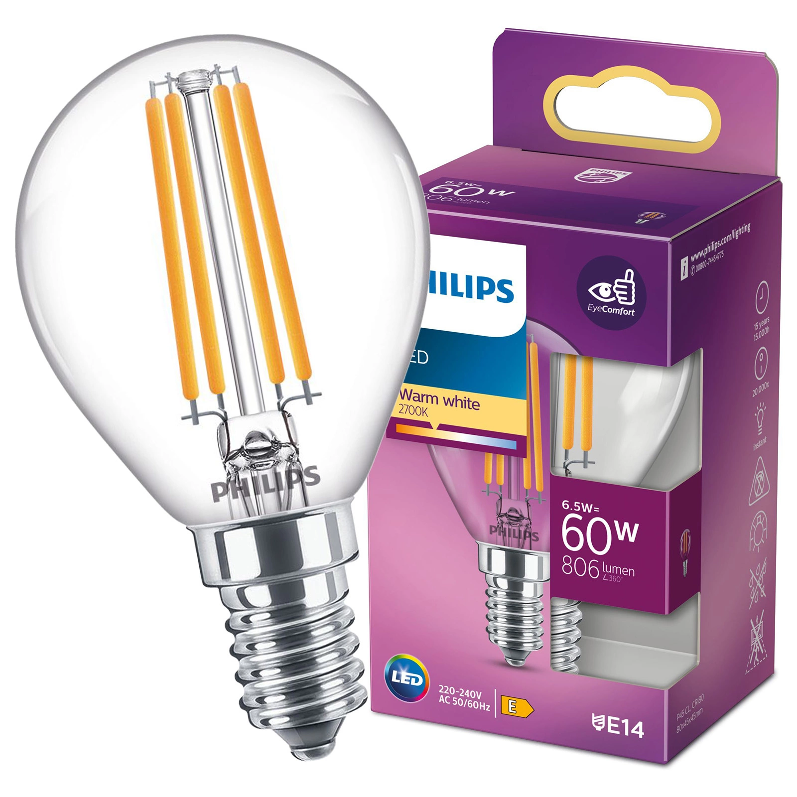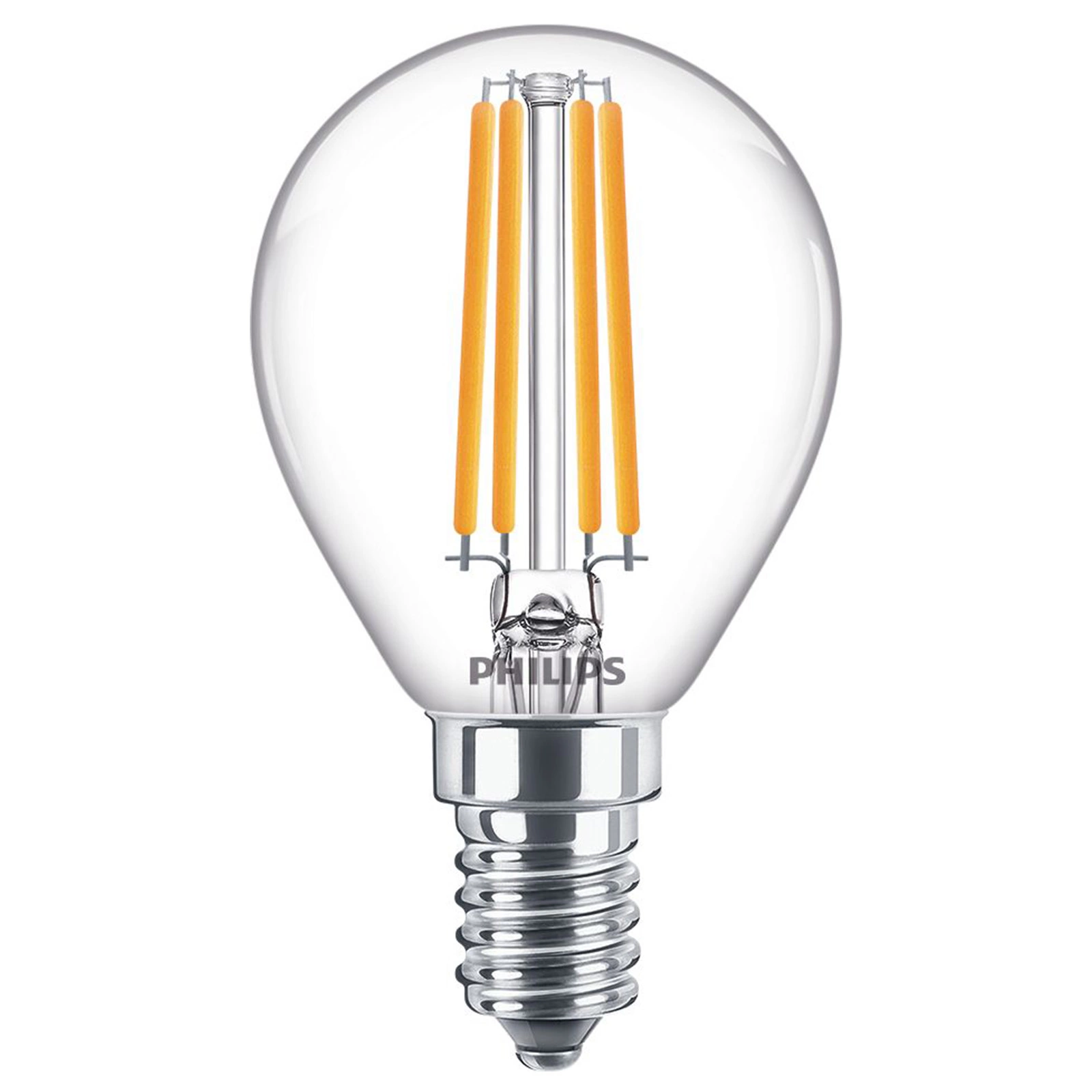 Przezroczyste żarówki LED w kształcie kulki firmy Philips zapewniają wspaniały efekt skrzącego się światła i wyjątkową trwałość. Wyglądają pięknie również wtedy, gdy są wyłączone. Doskonale pasują do żyrandoli z małym gwintem (E14).