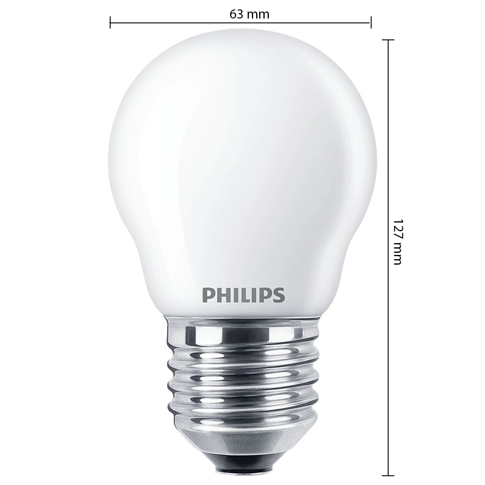 Żarówka LED firmy Philips w kształcie kulki zapewnia ciepłe światło, wyjątkową trwałość i natychmiastowe znaczne zmniejszenie zużycia energii. Dzięki ciepłej temperaturze barwowej przypominającej kolor płomieni jest to doskonały wybór do stworzenia przytulnej atmosfery.