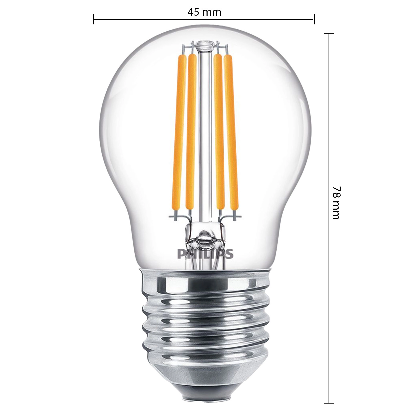 Żarówka LED firmy Philips w kształcie kulki zapewnia ciepłe światło, wyjątkową trwałość i natychmiastowe znaczne zmniejszenie zużycia energii. Dzięki ciepłej temperaturze barwowej przypominającej kolor płomieni jest to doskonały wybór do stworzenia przytulnej atmosfery.