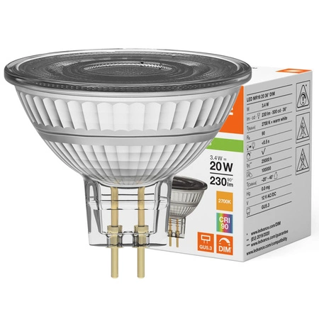 Prezentujemy nowoczesną żarówkę LED MR16 GU5.3 marki LEDVANCE, która łączy innowacyjność z ekologicznymi rozwiązaniami. Ten wysokiej jakości produkt o mocy 3,4 W jest odpowiednikiem tradycyjnej żarówki o mocy 20 W, co pozwala na znaczące obniżenie zużycia energii elektrycznej przy zachowaniu pełnej funkcjonalności. Dzięki ciepłej barwie światła (2700 K) doskonale nadaje się do tworzenia przytulnej atmosfery w domowych wnętrzach, jak również w przestrzeniach komercyjnych. Żarówka jest w pełni ściemnialna, co umożliwia regulację intensywności oświetlenia zgodnie z indywidualnymi potrzebami użytkowników.