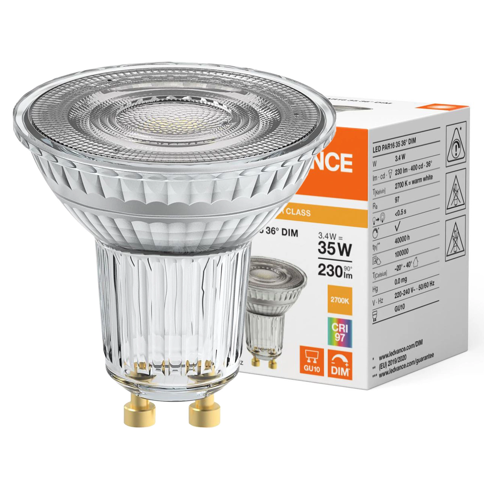 Odkryj innowacyjne rozwiązanie oświetleniowe z naszym produktem, jakim jest żarówka LED PAR16 GU10 o mocy 3,4W, która zastępuje tradycyjną żarówkę 35W. To energooszczędne źródło światła emitujące strumień o jasności 230 lumenów, dostarcza przyjemne, ciepłe białe światło o temperaturze barwowej 2700K. Dzięki wysokiemu wskaźnikowi oddawania barw (Ra 97), zapewnia naturalne oświetlenie, które idealnie uwydatnia kolory w każdym wnętrzu. Żarówka kształtem nawiązuje do standardu PAR16, a zastosowanie szkła jako materiału gwarantuje trwałość i estetyczny wygląd.
