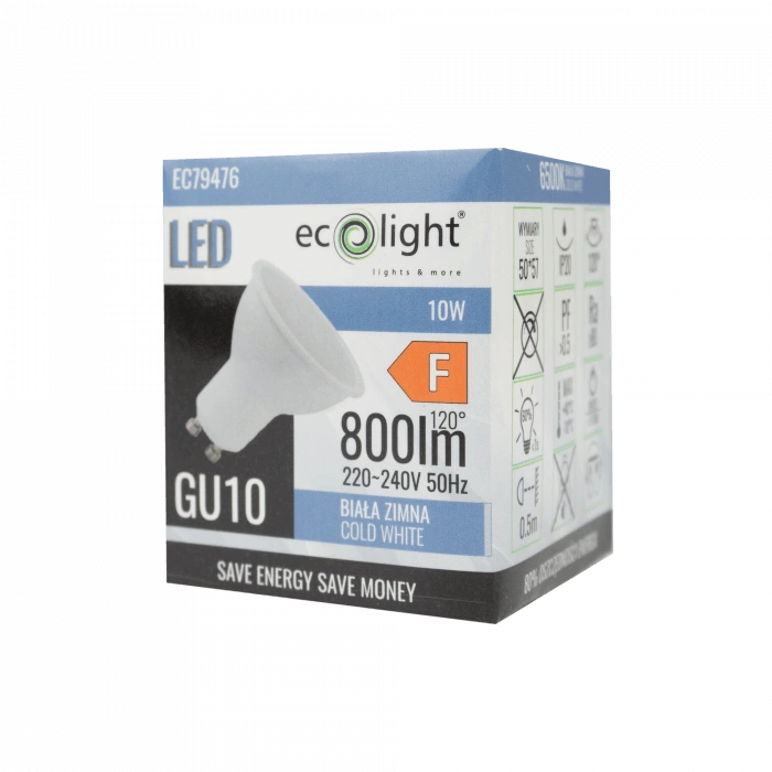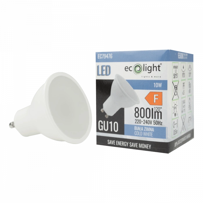 Odkryj moc i nowoczesny design żarówki LED Reflektor GU10 10W 900lm 6500K Zimna Ecolight, która wniesie do Twojego wnętrza wyjątkową jasność i komfort. Dzięki technologii LED, zapewnia nie tylko oszczędność energii, ale też długą żywotność do 20 000 godzin. Idealna do każdego salonu, kuchni czy biura, oferuje strumień świetlny o mocy 900 lumenów i biało-zimną barwę światła o temperaturze 6500K, co sprawia, że każde pomieszczenie staje się przyjazne dla oczu i komfortowo oświetlone.