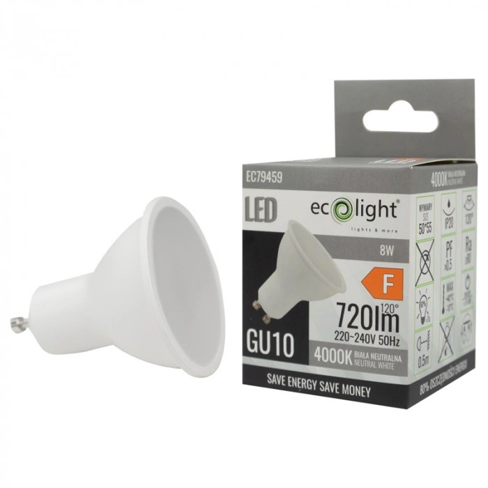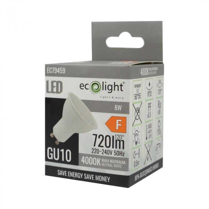 Odkryj jasność, której zawsze pragnąłeś dzięki żarówce LED Reflektor GU10 od Ecolight. Z mocą 8W i strumieniem świetlnym 720 lm, ta żarówka oferuje skuteczność 90 lm/W, co czyni ją energooszczędnym wyborem dla każdego domu i biura. Jej neutralna, biała barwa o temperaturze 4000K doskonale pasuje do różnych pomieszczeń, zapewniając przyjemne, naturalne światło.