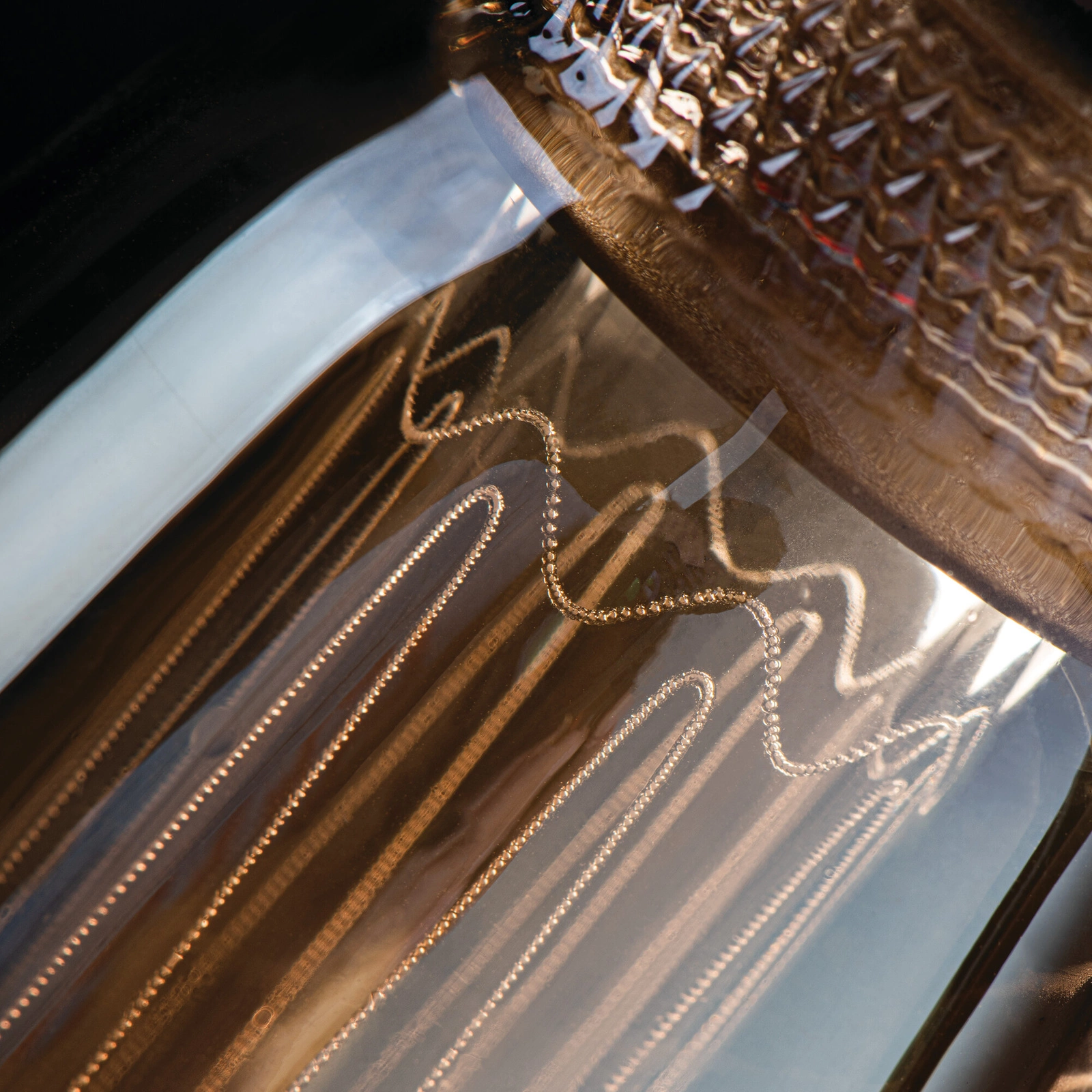 - Oświetlenie dekoracyjne – dzięki stylowemu wyglądowi żarówka może być stosowana w designerskich żyrandolach oraz lampach stołowych;
