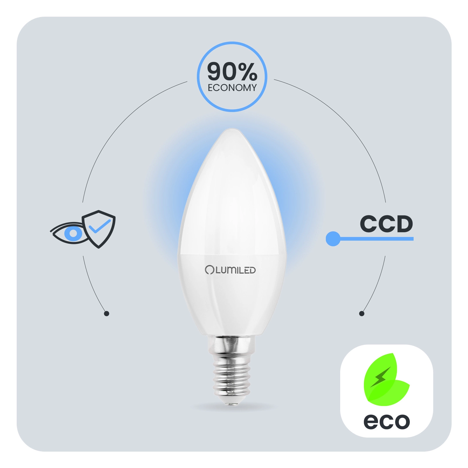 Zastosowana przetwornica CCD w żarówce LED sprawia, że żarówka jest odporna na spadki i wzrosty napięcia w sieci. Światło nie migocze, ani nie drży. Przetwornica CCD sprawia, że żarówka jest bezawaryjna przez długi czas. Żarówki LUMILED zaprojektowane zostały z myślą o jej użytkownikach. Słaba jakość oświetlenia może prowadzić do zmęczenia oczu dlatego nasze Żarówki posiadają opracowanie techniczne Eye Safe zapewnią komfortowe i przyjazne oświetlenie twoim oczom w każdym pomieszczeniu.