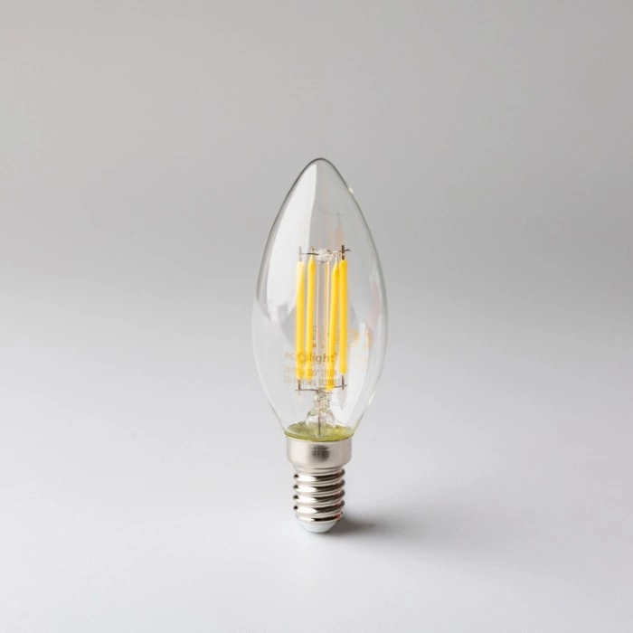 Odkryj nową jakość oświetlenia z Żarówką LED Świeczka B35 E14 6W 720lm 2700K Ciepła FILAMENT od Ecolight. Idealna do stworzenia przytulnej atmosfery, dzięki swojej barwie światła o temperaturze 2700K. Ta żarówka dostarcza imponujący strumień świetlny 720 lumenów, które zapewniają doskonałe oświetlenie w każdym zakątku Twojego domu. Wyposażona w przezroczysty szklany klosz emituje przyjemne, ciepłe światło, które tworzy cudowną aurę spokoju i relaksu.