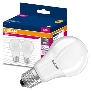 Chwilowo niedostępny2x Żarówka LED A55 E27 4.9W = 40W 470lm 6500K Zimna 180° VALUE CLASSIC Osram
