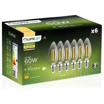 Zestaw 6x Żarówka LED ŚWIECA B35 E14 7W = 60W 806lm 3000K Ciepła 360° Filament LUMILED