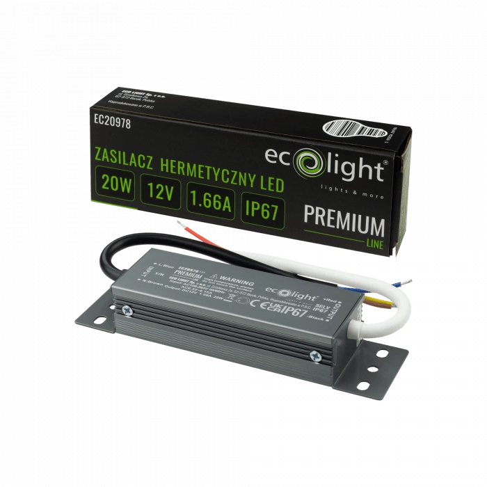 Hermetyczny zasilacz PREMIUM o mocy wyjściowej 20W to niezawodne rozwiązanie do zasilania urządzeń wymagających 12V DC. Dzięki solidnej konstrukcji i klasie szczelności IP67, produkt zapewnia pełną ochronę przed kurzem i wodą, co czyni go idealnym do stosowania w trudnych warunkach środowiskowych, zarówno wewnętrznych, jak i na zewnątrz. Zasilacz charakteryzuje się szerokim zakresem napięcia wejściowego 100-264V AC, co umożliwia jego uniwersalne zastosowanie w różnych lokalizacjach, a także przy zmiennych parametrach sieci.