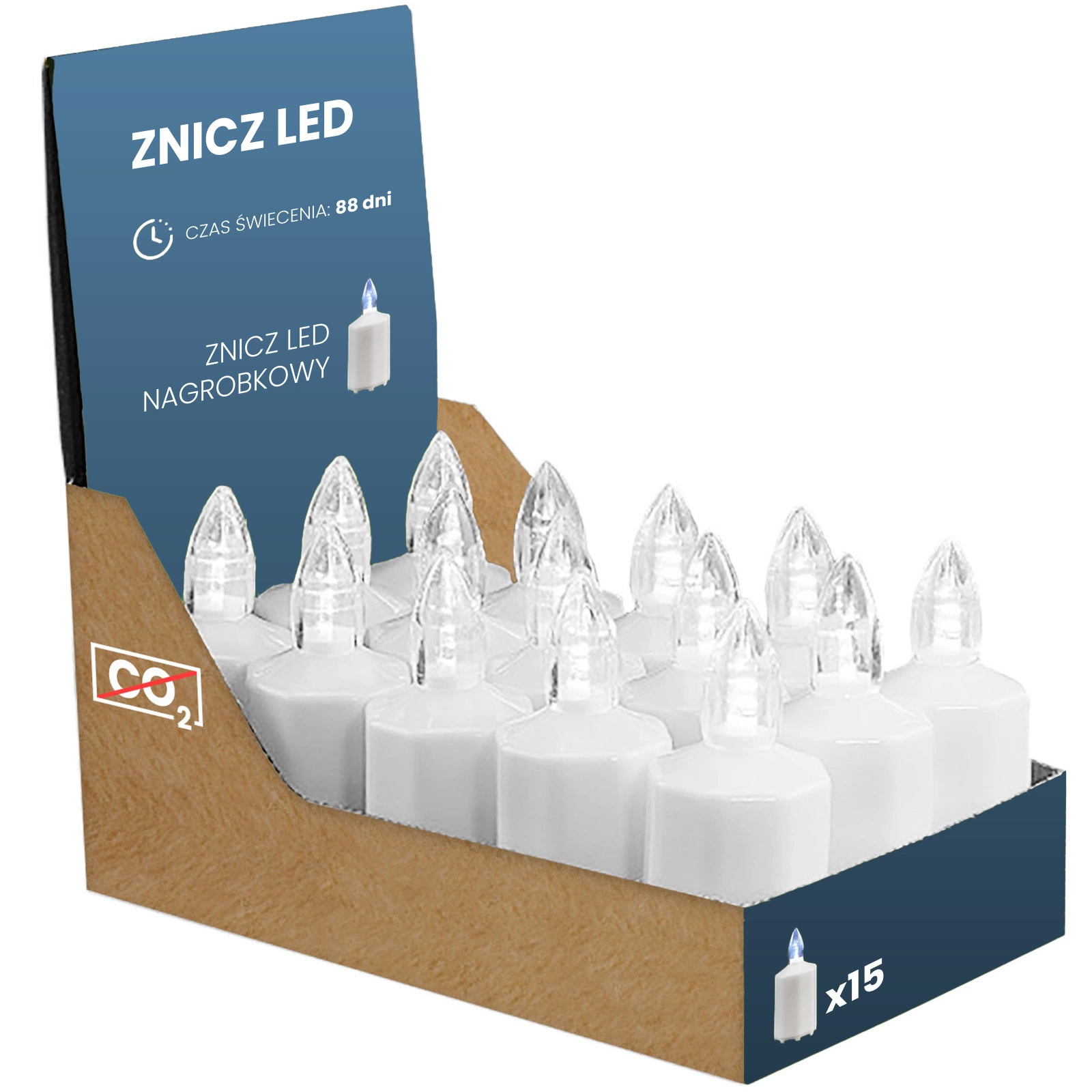 - 15 sztuk zniczy elektrycznych LED w kolorze białym, idealnych do długotrwałego użytku