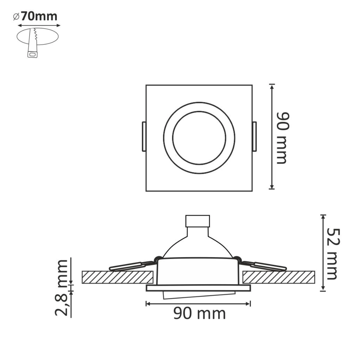 - Wymiary oprawy: 90*90*25 mm
