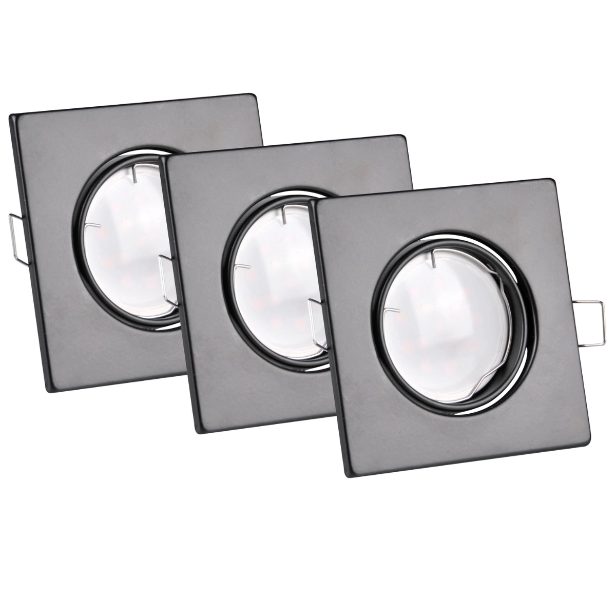Zestaw 3x Oprawa halogenowa ruchoma GOLDLUX kwadratowa czarna + żarówka LED GU10 3,5W