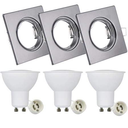 • Typ produktu: Oprawa halogenowa podtynkowa ruchoma kwadratowa + żarówka LED GU10 + gniazdo ceramiczne GU10