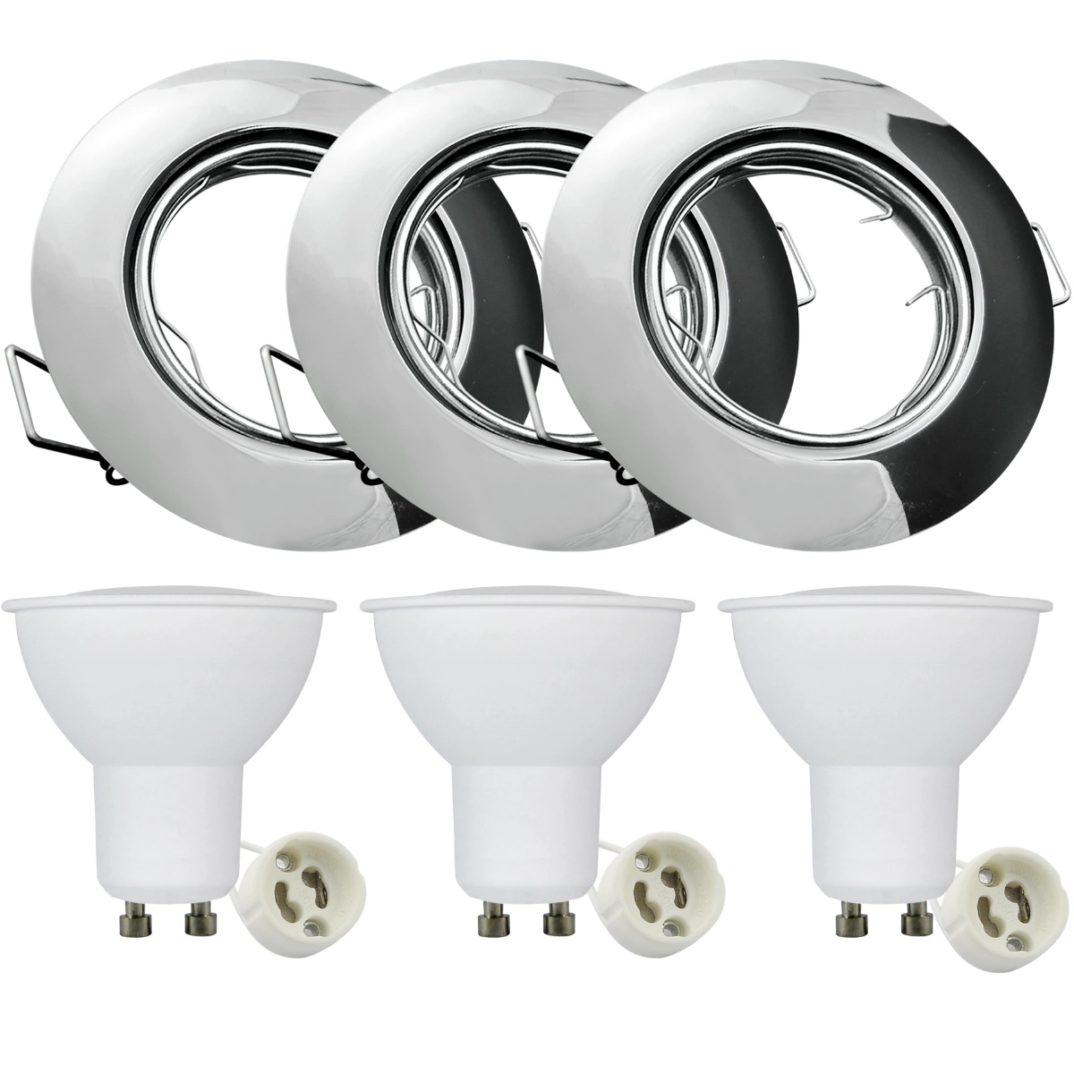 Zestaw 3x Oprawa halogenowa ruchoma GOLDLUX (Polux) okrągła chrom + żarówka LED GU10 3,5W