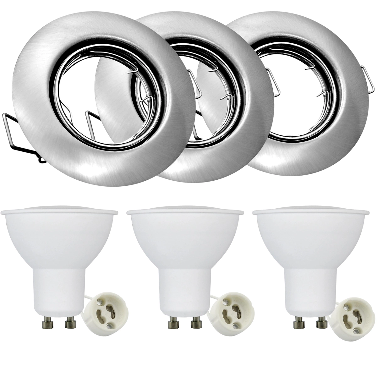 Zestaw 3x Oprawa halogenowa ruchoma GOLDLUX okrągła nikiel + żarówka LED GU10 3,5W