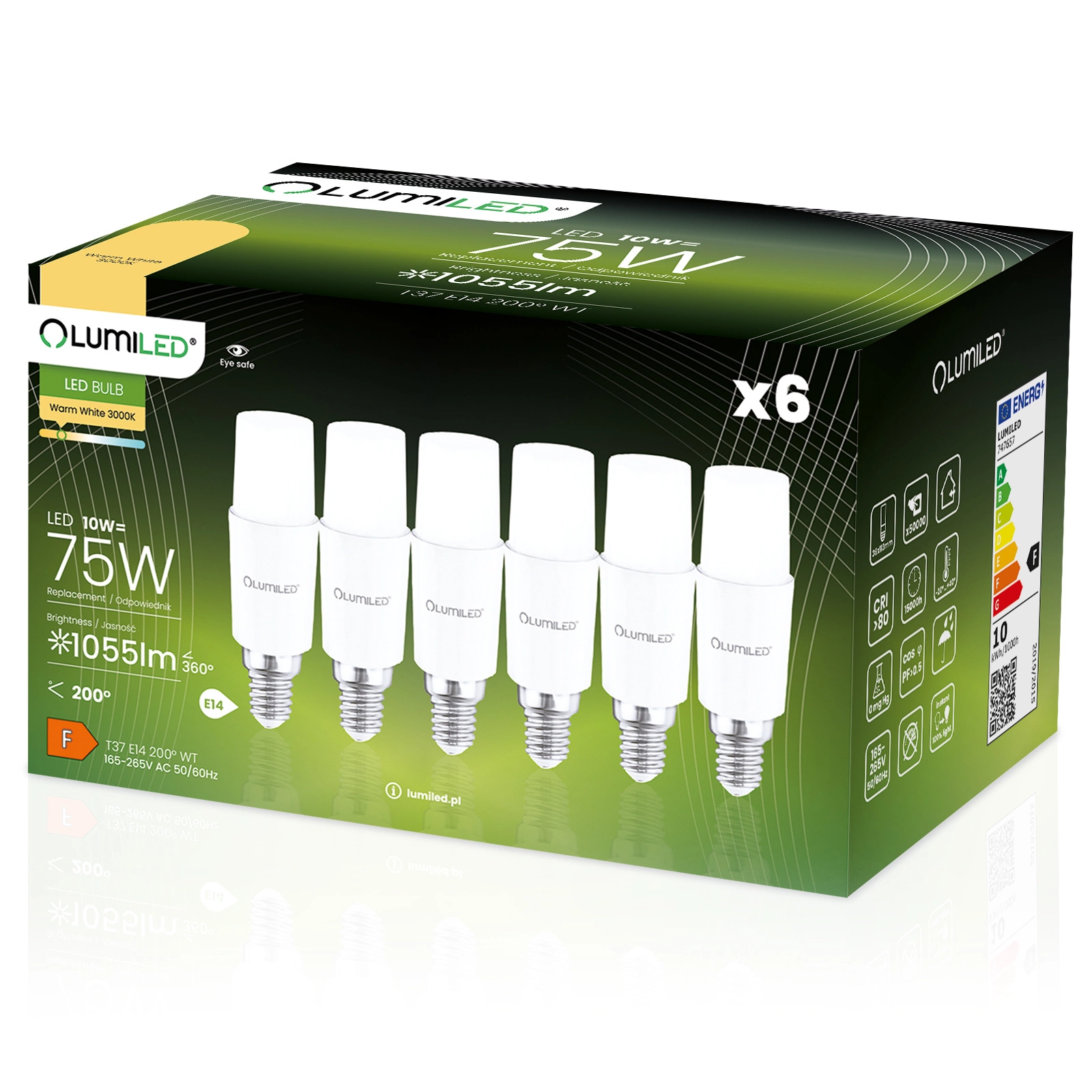 6x Żarówka LED E14 Tubularna T37 10W = 75W 1055lm 3000K Ciepła 200° LUMILED
