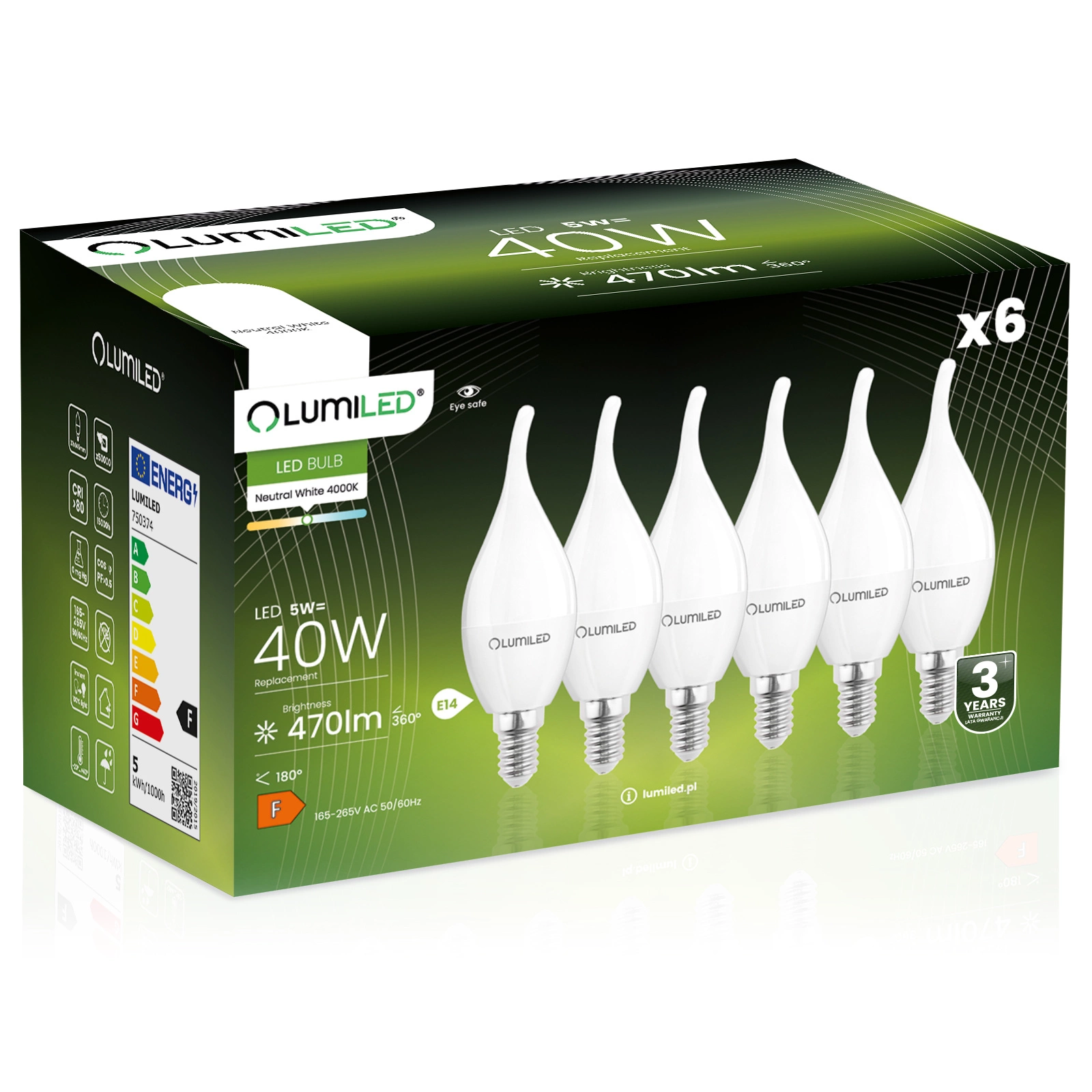 6x Żarówka LED E14 Świeczka BA35 5W = 40W 470lm 4000K Neutralna 180° LUMILED