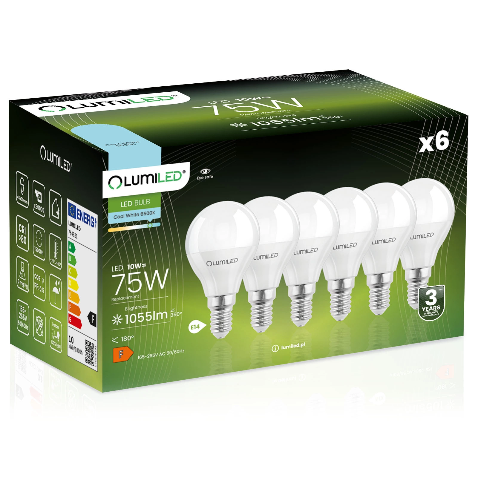 Zestaw 6x Żarówka LED renomowanej marki LUMILED z trzonkiem E14 i mocy 10W to doskonały zamiennik tradycyjnych żarówek o mocy 75W, oferując przy tym oszczędność energii oraz dłuższą żywotność. Emituje światło o strumieniu świetlnym 1055 lumenów i zimnej barwie 6500K co sprawia, że idealnie nadaje się do oświetlenia wnętrz, gdzie wymagana jest mocna, biała barwa światła. Kąt świecenia wynoszący 180° pozwala na szerokie rozproszenie światła, skutecznie oświetlając pomieszczenie. Dzięki wysokiej jakości wykonania, ma żywotność aż 15 000 godzin, co przekłada się na wieloletnie użytkowanie. Dodatkowo pracuje w szerokim zakresie napięcia 165-265V i jest przystosowana do użytkowania w temperaturach otoczenia od -20°C do +40°C. Idealny wybór dla osób ceniących oszczędność energii oraz dbałość o środowisko.